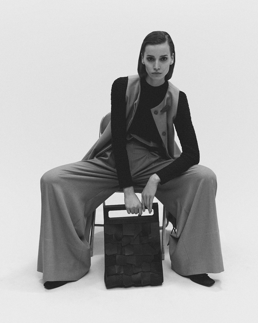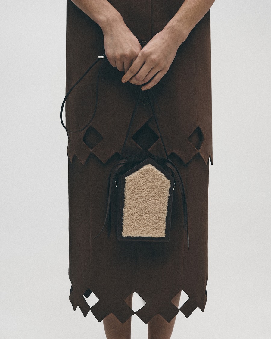 A special accessory was the bestseller of the KHUTIR collection – Vitryak bag in new versions – in black, with a sheepskin insert, in a larger-sized. They perfectly complemented the looks and emphasized the connection between the origins of Ukrainian folk architecture and Kyivan Rus.