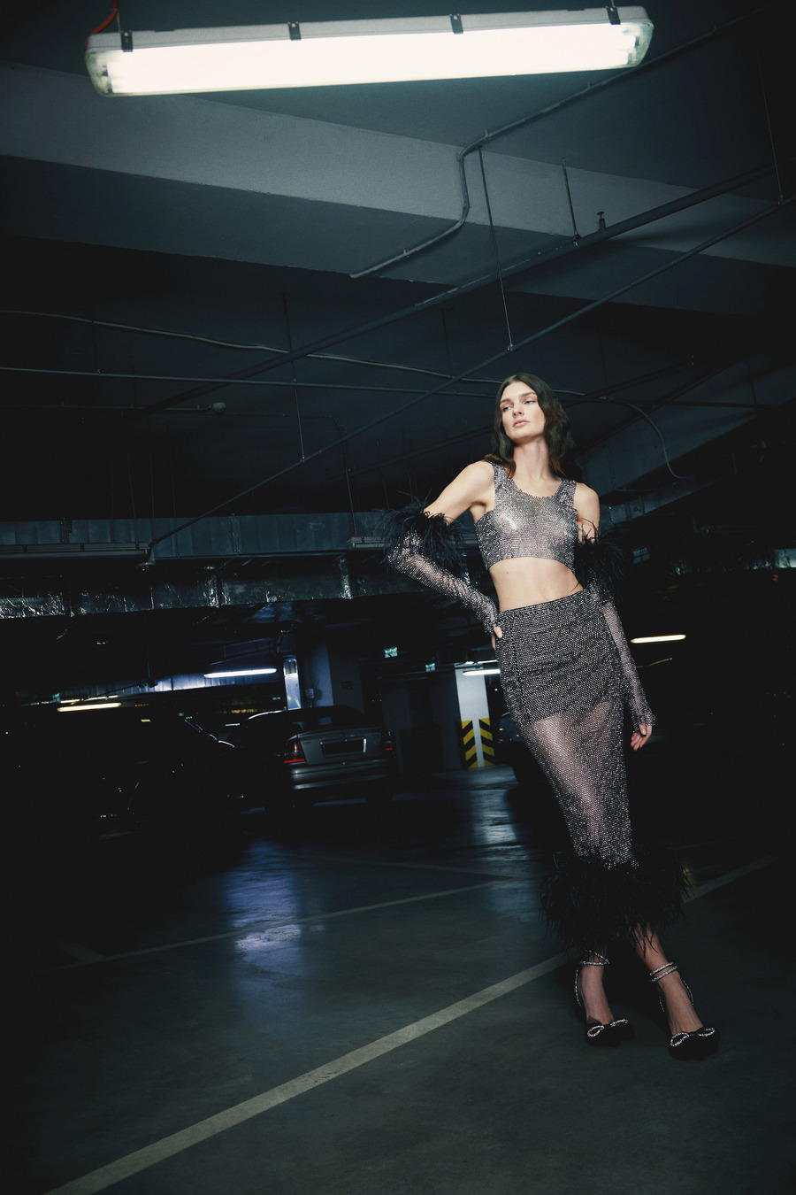 The campaign for the collection was shot in an underground parking lot in Kyiv during an air raid alert, emphasising that the SANTA BRANDS team proudly keeps operating at home in Ukraine. The brand’s sophisticated pieces surrounded with metal and concrete show the contrast between a peaceful life of leisure and such trying times, reminding us how vital it is to shine even through the darkest times.