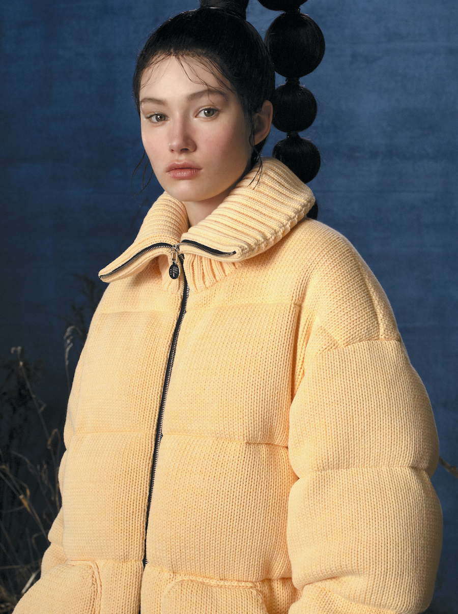 The collection also features the Knitted Michlin and the new Knitted Kenny Jacket, incorporating a special knitting technique. Inspired by the sweaters worn at ski resorts, the jackets are filled with warm goose down, making them suitable for the strolls in the mountains. And the waterproof membrane inside will keep the wearer protected during the snowstorm.