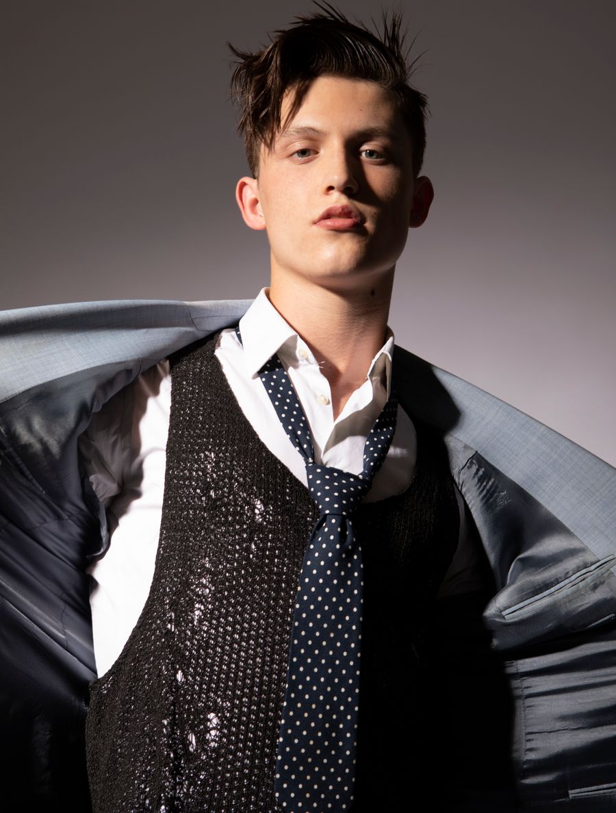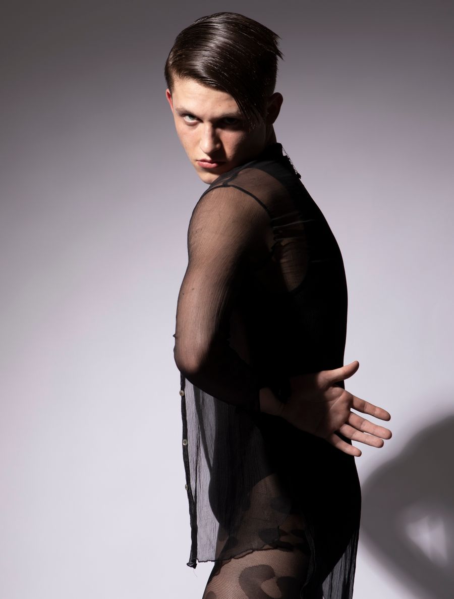 With a more refined and delicate wardrobe we attempt to create a more genderless approach to men’s fashion. We explore what the new depths of modern masculinity could be, while still enabling Brandon to feel empowered by his own desire to wear something bold and sexy.