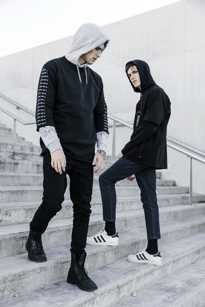 A KALTBLUT exclusive menswear editorial. Photography by Joel Beraldi. Models are Joaquin Carreira and Joaquin Fagmann, both signed to Civiles. Styled by Cristian Lobos using fashion by Bullbenny and Polo, Adidas. Makeup by Marina Eskenazi.