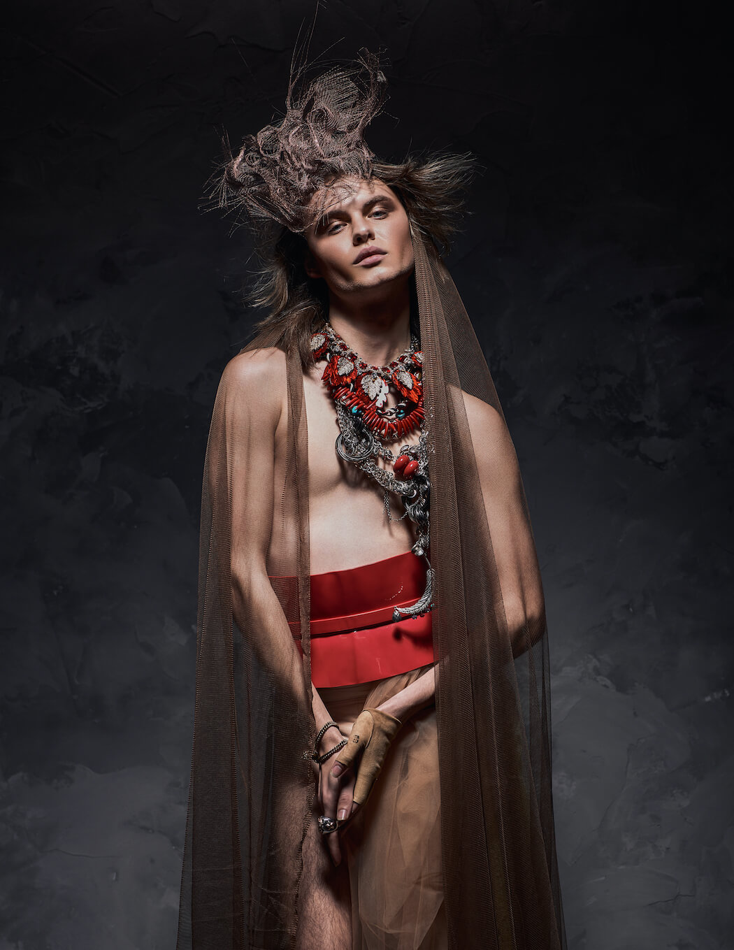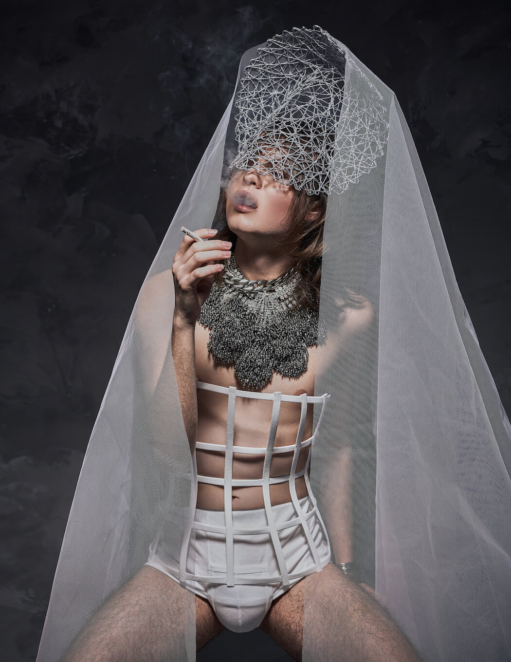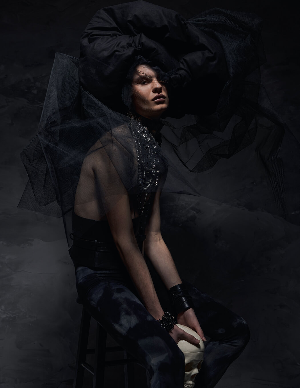 A KALTBLUT exclusive. Photography by Derec Ethan. Styling by Paul O’Connor. Model is Jack Taylor signed at Chadwick Models. Hair and Makeup by Hendra Widjaj. Fashion Brands include Headpieces by Atelier Eight, Jewellery by Rummage Accessories and Corsets by EDNthelabel and Aurelio Costarella.