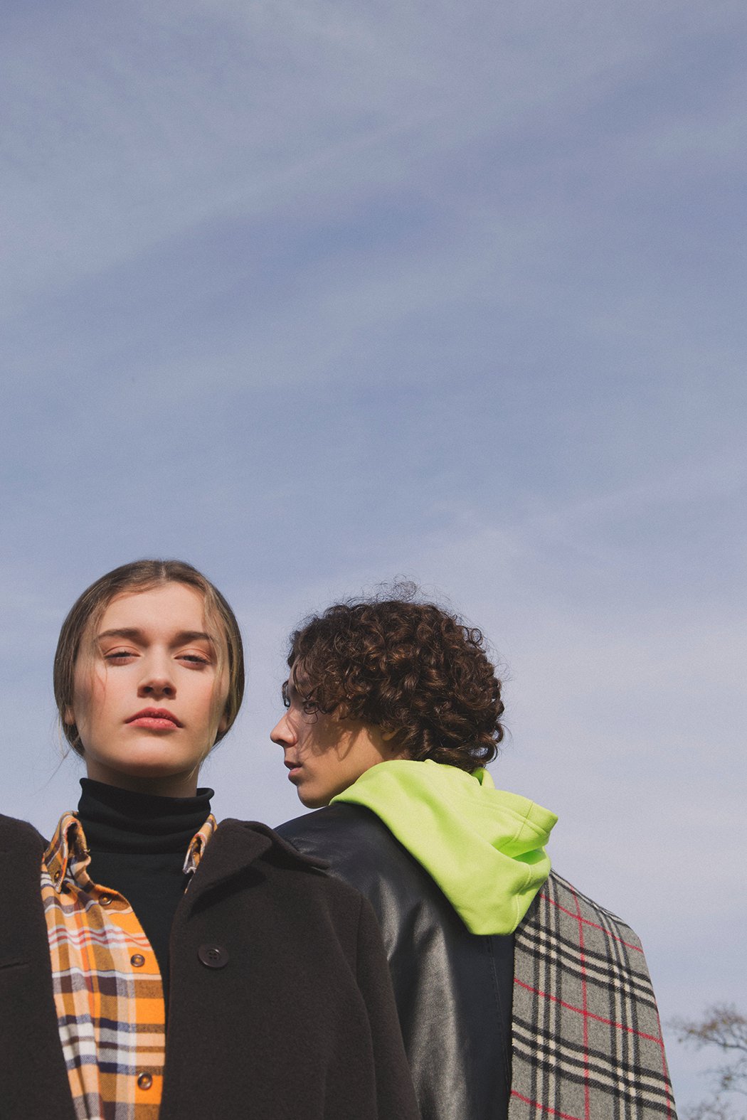 A KALTBLUT exclusive fashion editorial. Photography by Daniel Cao. Models are Laura Carrasco and Max Lago. Grooming by Maialen Estalayo. Project and Styling by Julia Pujol and Alba Solis. Fashion by Burberry, Puma, Valentino, Massimo Dutty, Urban Outfitters.