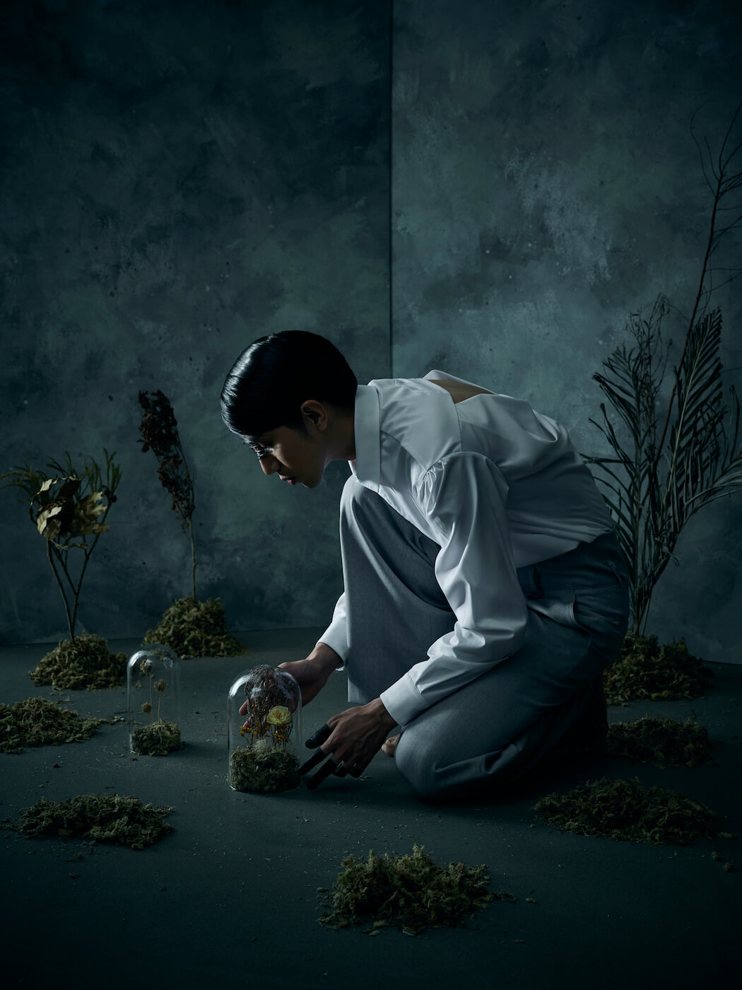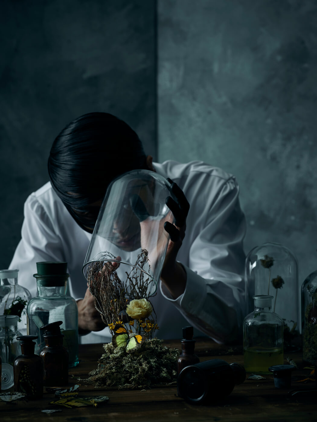 Set in a fictional dystopia where a man living in solitary builds smaller worlds within his workshop. These more miniature worlds inhabit creatures that live an untroubled and colourful life than what reality offers. With the uncertainty in the world we live in today, the team wishes to craft an editorial that allows for a sweet escape.