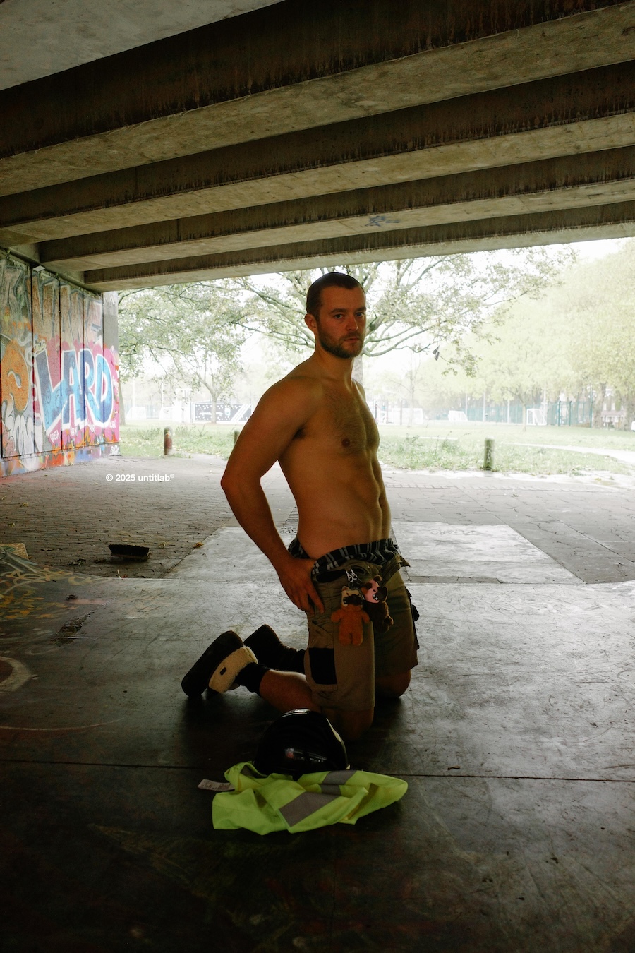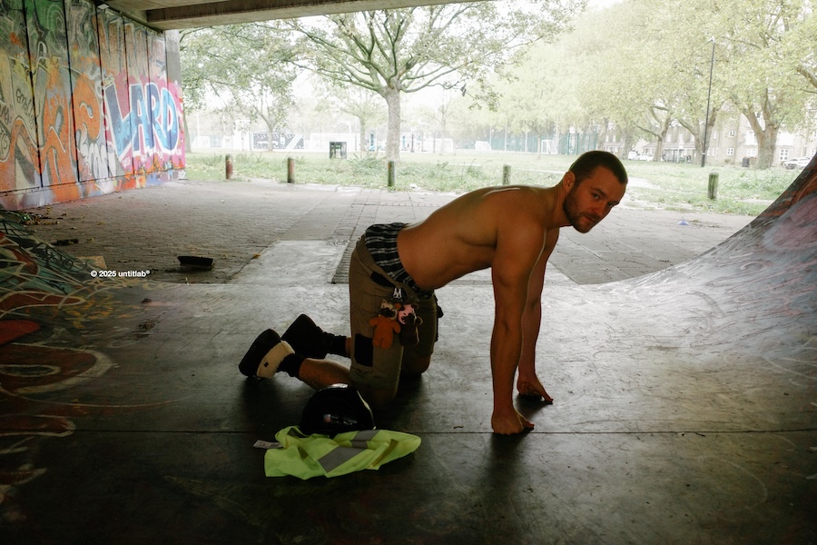 The accompanying TRADE CAMPAIGN follows an enigmatic character navigating East London, embodying the fluidity between lover and worker. This narrative examines masculinity as influenced by uniformity, physical space, and the gaze of the observer. Rather than treating the body as a mere object, the campaign emphasises how labour, attire, and desire leave their imprint on the urban landscape.
