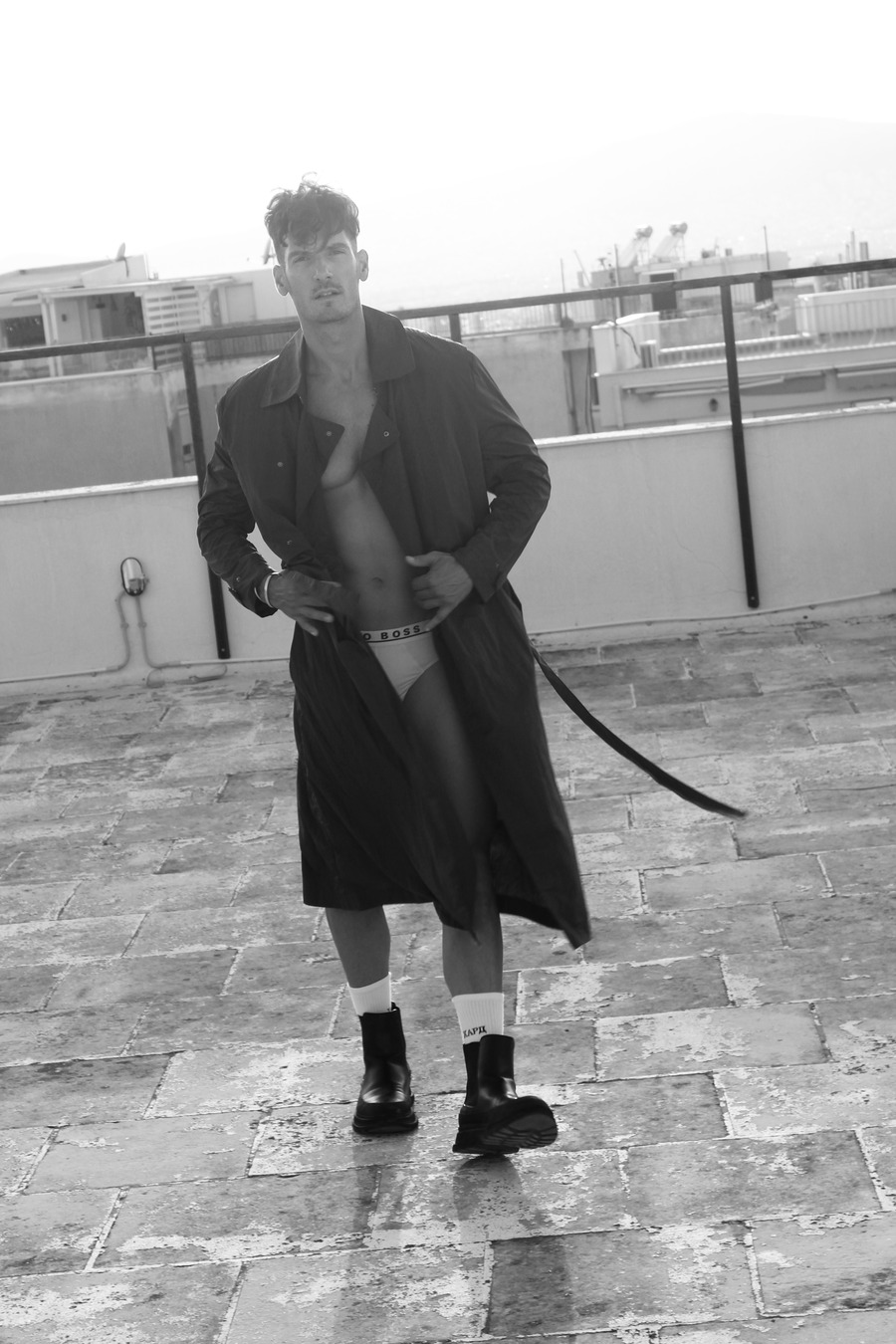 A KALTBLUT exclusive. Photography by Yiorgos Mesimeris. The model is Alex Tolis. Fashion by HardClo, Eytys, Bottega Veneta, Calvin Klein, Hugo Boss.