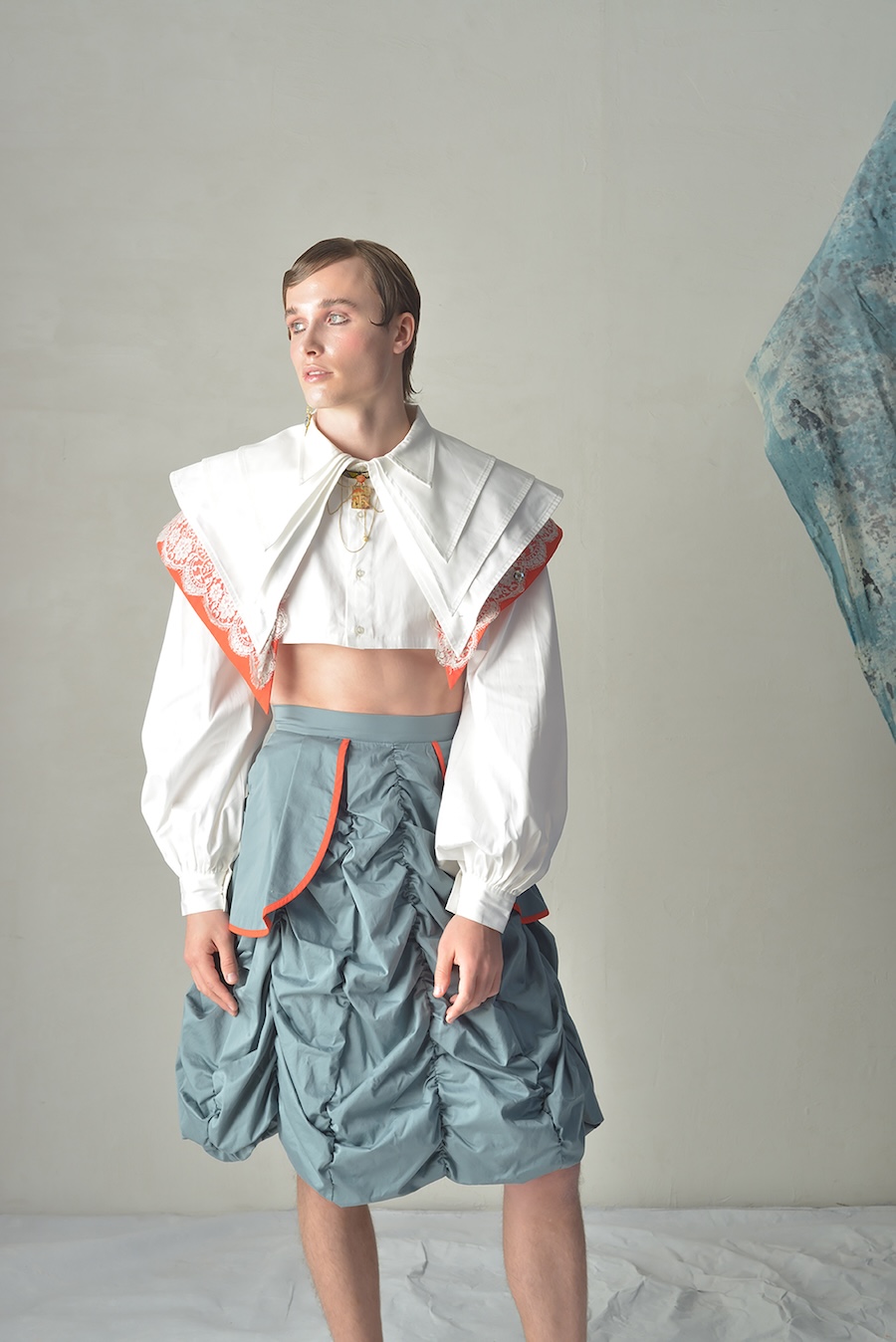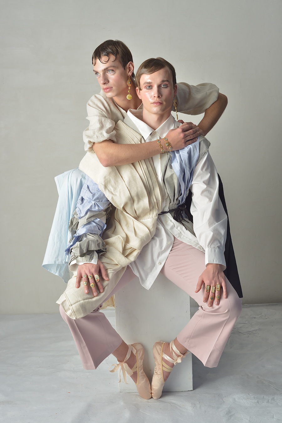 A KALTBLUT exclusive. Photography by Marta Petrucci. Creative Direction by Carolina Turra. Make-up and Hair by Chiara Gabriele. “Uptown Boys” begins with an ethereal and whimsical ambiance, showcasing young men in soft pastel hues and light, airy fabrics. This section emphasizes innocence, optimism, and the carefree spirit of youth. As the narrative progresses, the atmosphere shifts, introducing deeper, darker colours and heavier textures to reflect a more mature, introspective, and complex side of the same individuals.