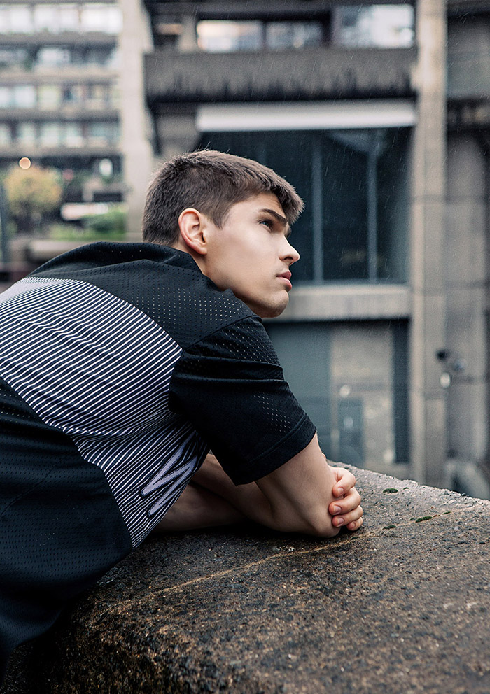 A KALTBLUT exclusive menswear editorial. Photography by Ashley Jang. Model is Viktor Schneider signed at Nevs Models London. Make up by Pierrick Gaulthier. Styling by Paige Murphy. Urban Athlete – The model’s dynamic movements, in contrast to a cold brutal architectural landscape, explores our inner desire to break out from a daily mundane life.