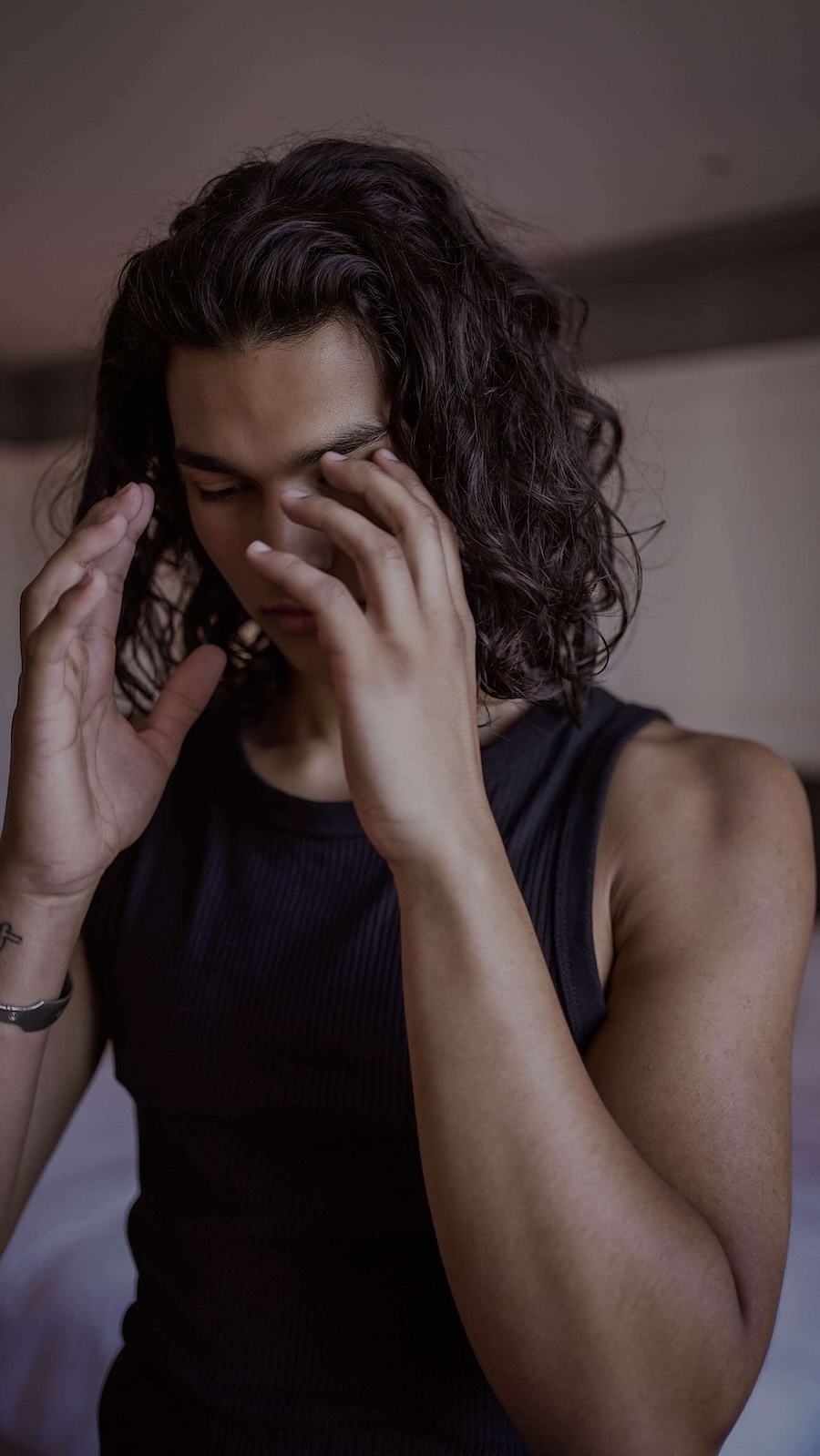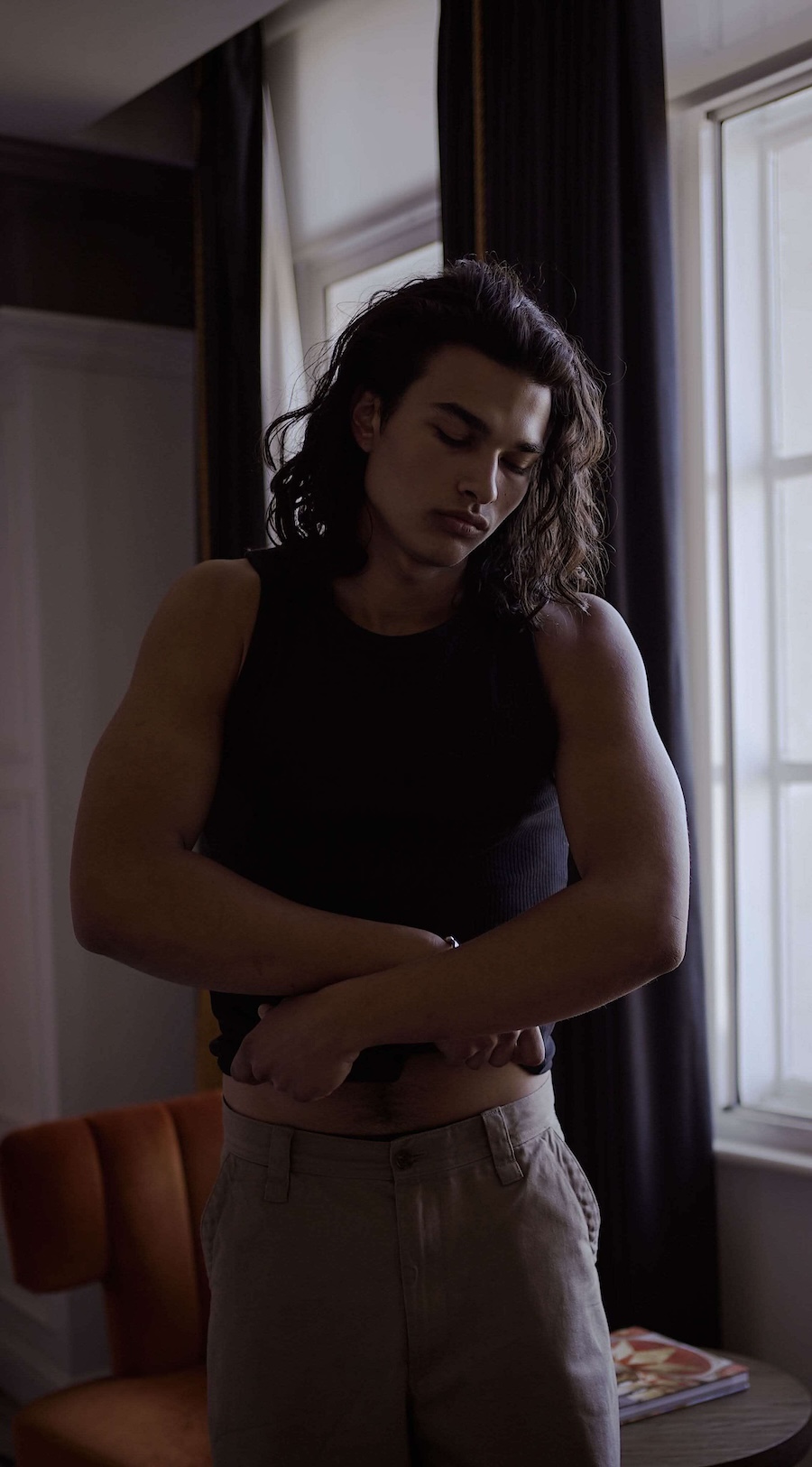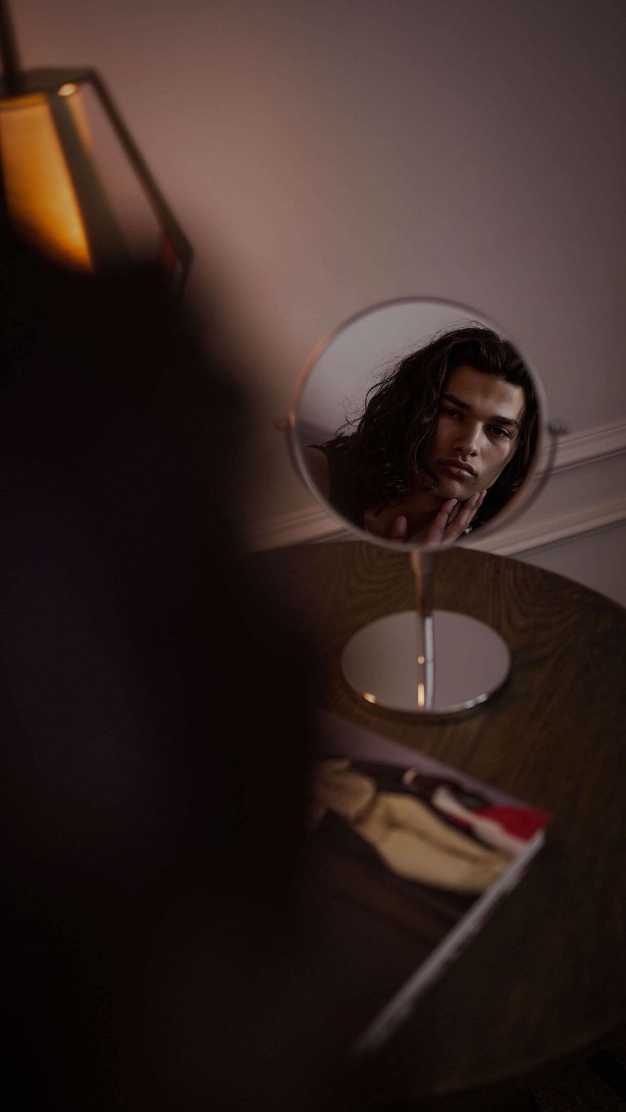 A KALTBLUT exclusive. Photography by Paulina Gallardo. The model is Leny Ray Faye from Nevs Models. Location is Marriott Hotel County Hall, London. Paulina Gallardo is a South American photographer currently based in Paris, France. Her work is deeply inspired by poetry, love, and baroque aesthetics, often exploring themes of divine masculinity and beauty through boudoir photography. She has produced fashion editorials and artistic projects, including a series titled Pas De Deux, which transports viewers to the 17th century with its visual storytelling.