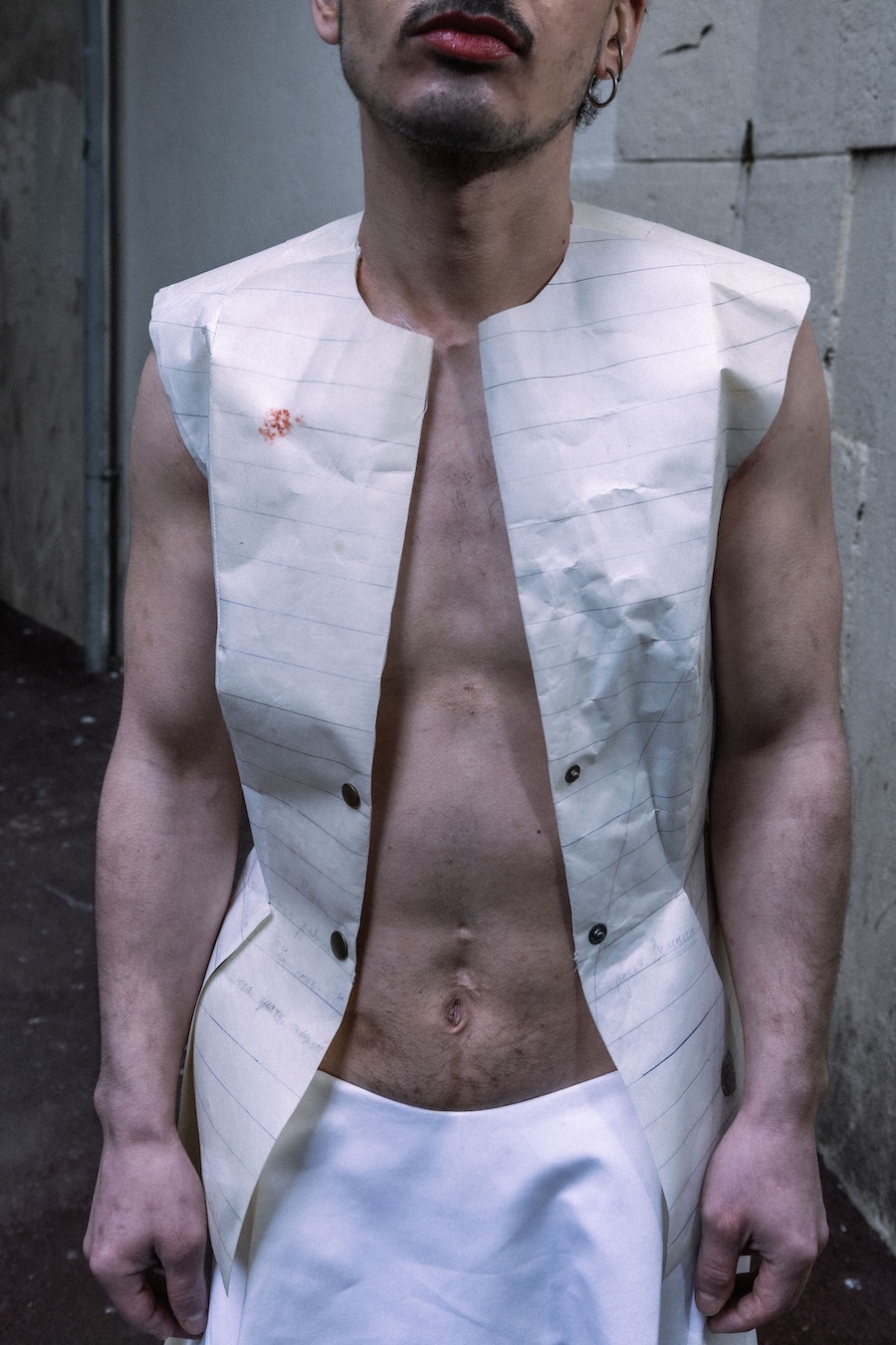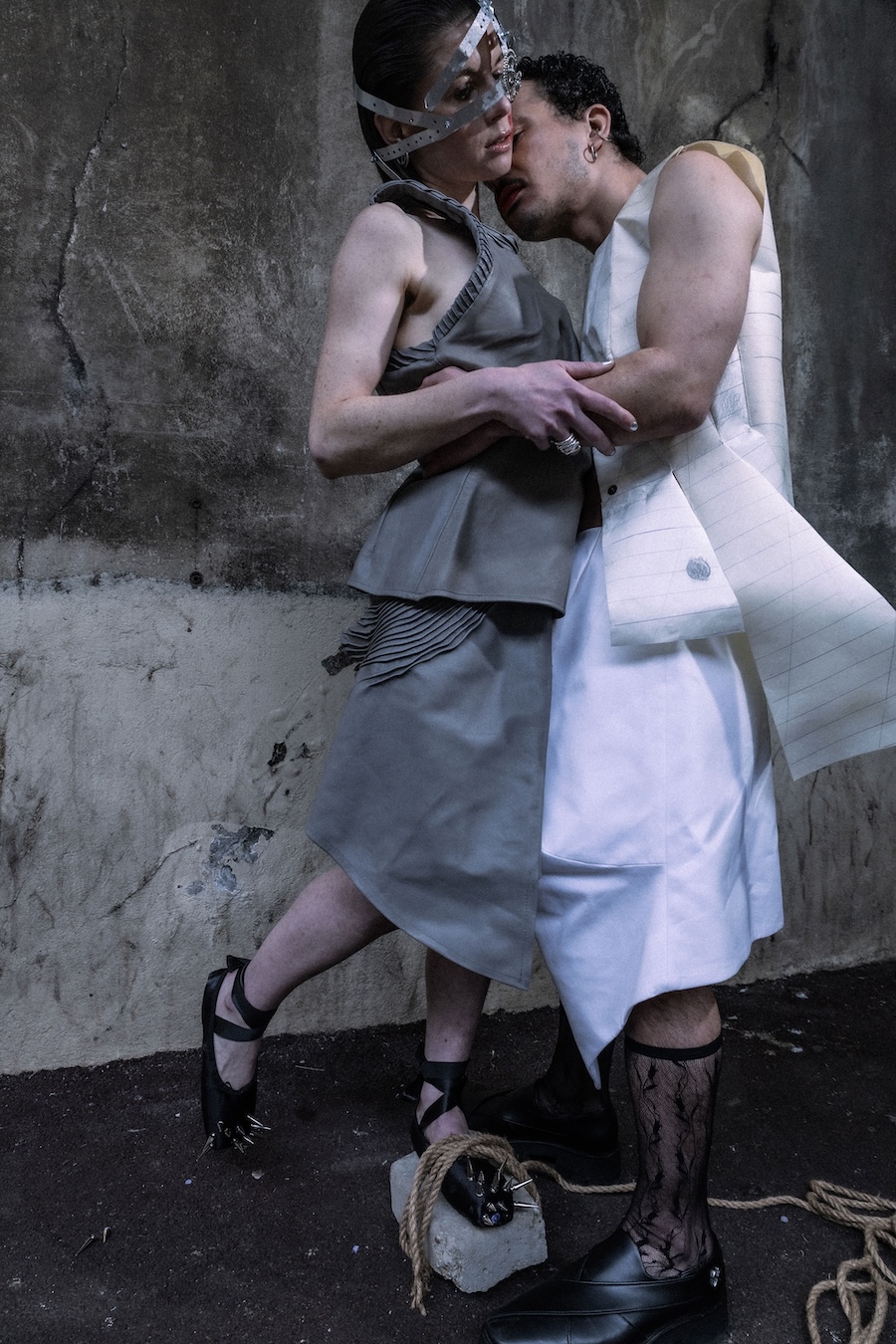 A KALTBLUT exclusive editorial. Photography by Ma Junyi. Art direction & styling by Niki Zhong and Ma Junyi. The models are Cas and Bilel Kilian Bellil. Make up & hair by Mateo Aureille. Accessories made by Jun Hao and Ma Junyi. Assisted by Victor. The brands used are Alexandra Zhukova, Luo QueYang and Gao Qian.