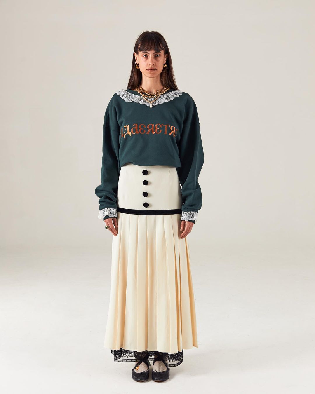 This Fall-Winter 21/22 is a journey inspired by the Roma Culture. The garments channel this fascinating miscellaneous of aesthetics, traditions juxtaposed with heritage to transcend fashion trends, to create an eternal style. From long skirts and dresses to structured blazers and gangster-loose pants to heavy knits, the overlaying is key. The College loafers bring both final elegance and fun touch to the full looks.