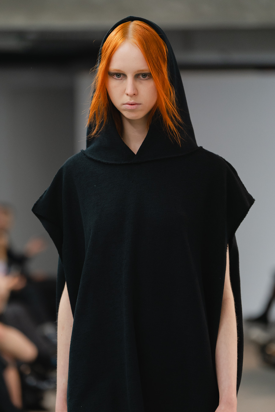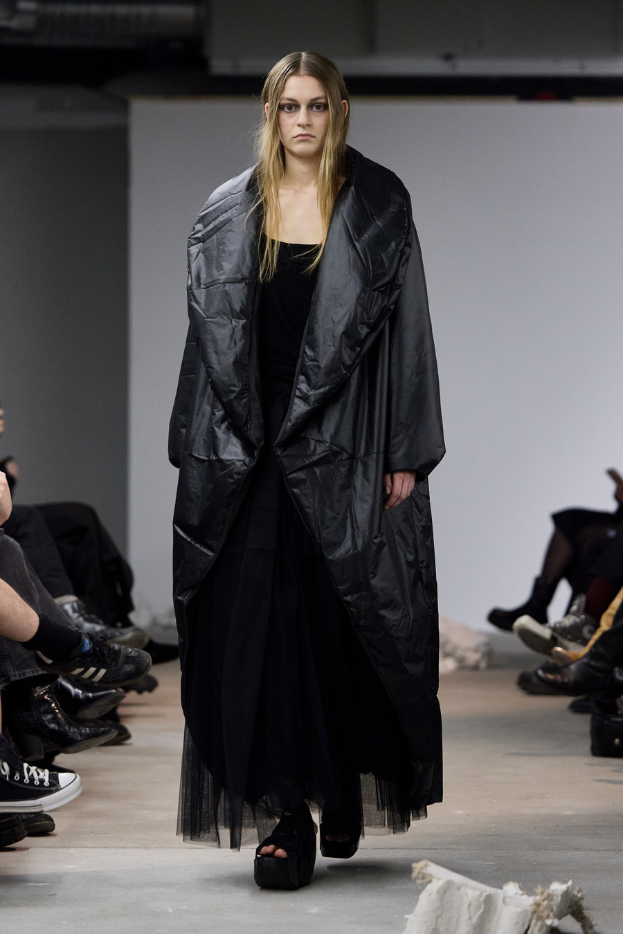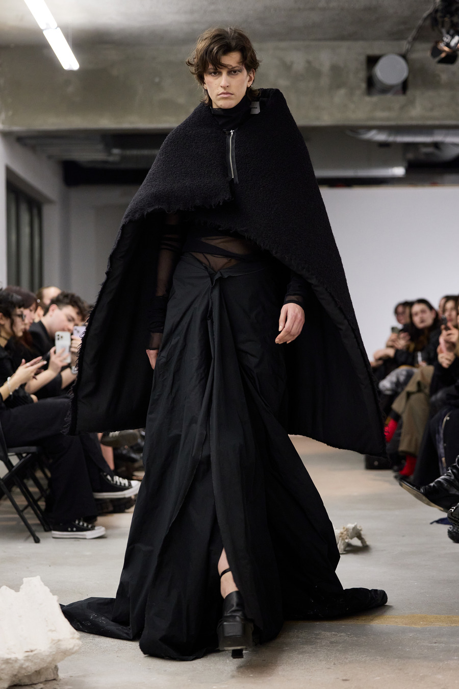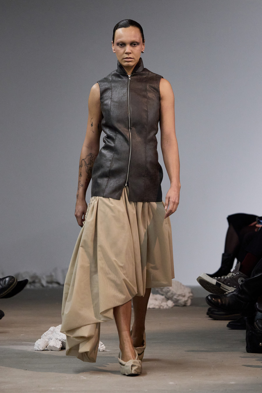 ‘REBUILT’ centres around the exploration of layering, a defining element of Baernthol’s identity. The runway presented a gradual evolution of looks, beginning with minimal, semi-transparent base layers and culminating in complex, voluminous silhouettes. The collection encapsulates a dynamic aesthetic, where layering plays a key role in adding depth and texture to each ensemble.