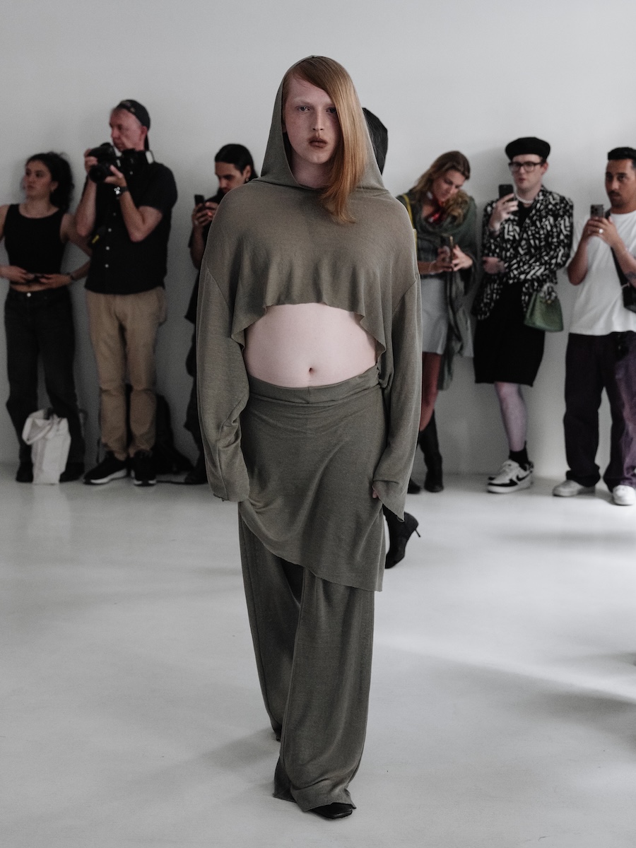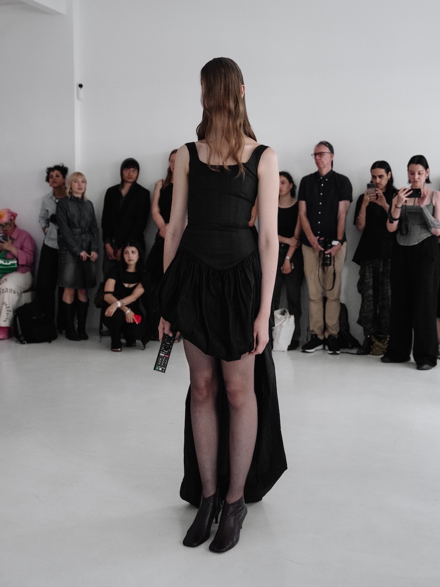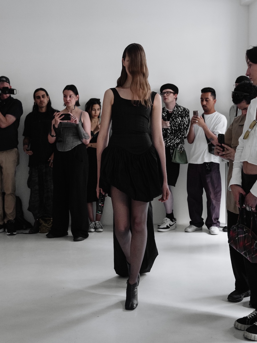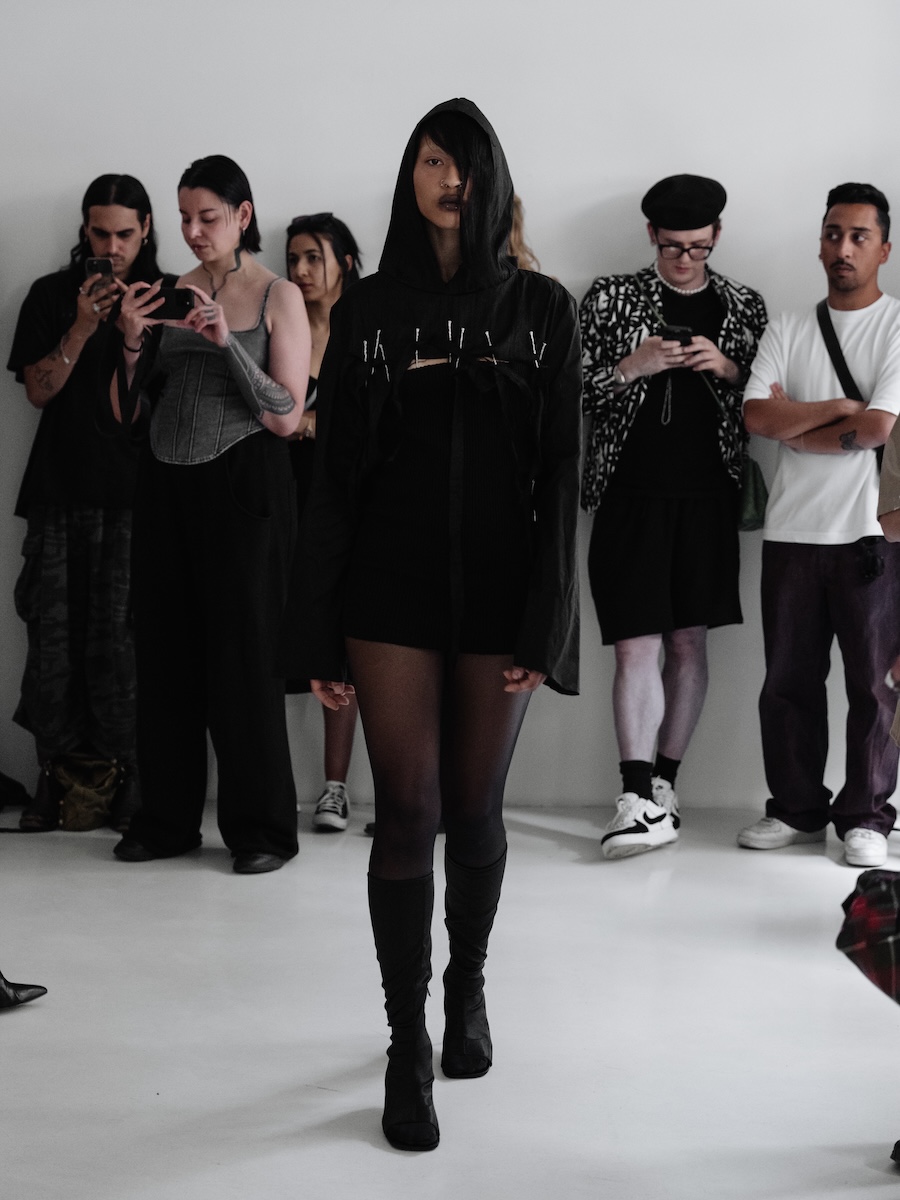 As the soundscape unfurled, it directed the models into a dance of subtle yet instinctive movements, enveloping the audience in an atmosphere of shifting presence. Each poised figure became a character in a larger narrative where movement, pose, and expression hinged on a commanding voice, a powerful reminder of how language shapes our perception of form. Here, failure, function, and pace were redefined, echoing through the unity of the models’ synchronised walks.