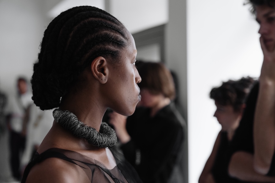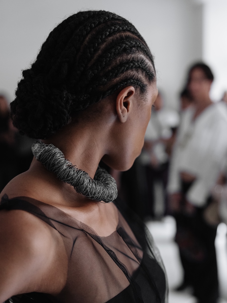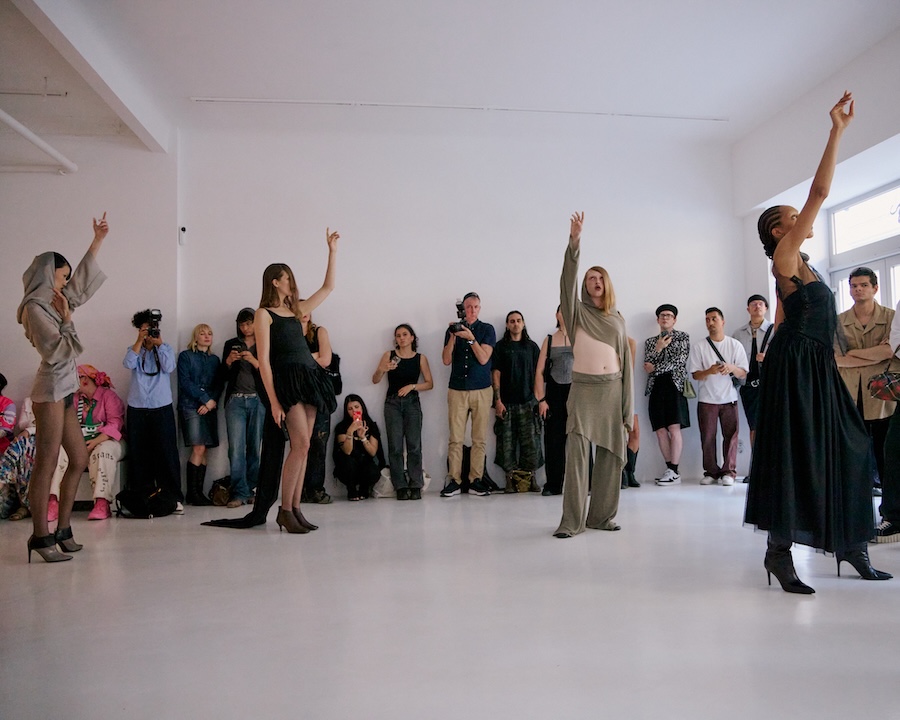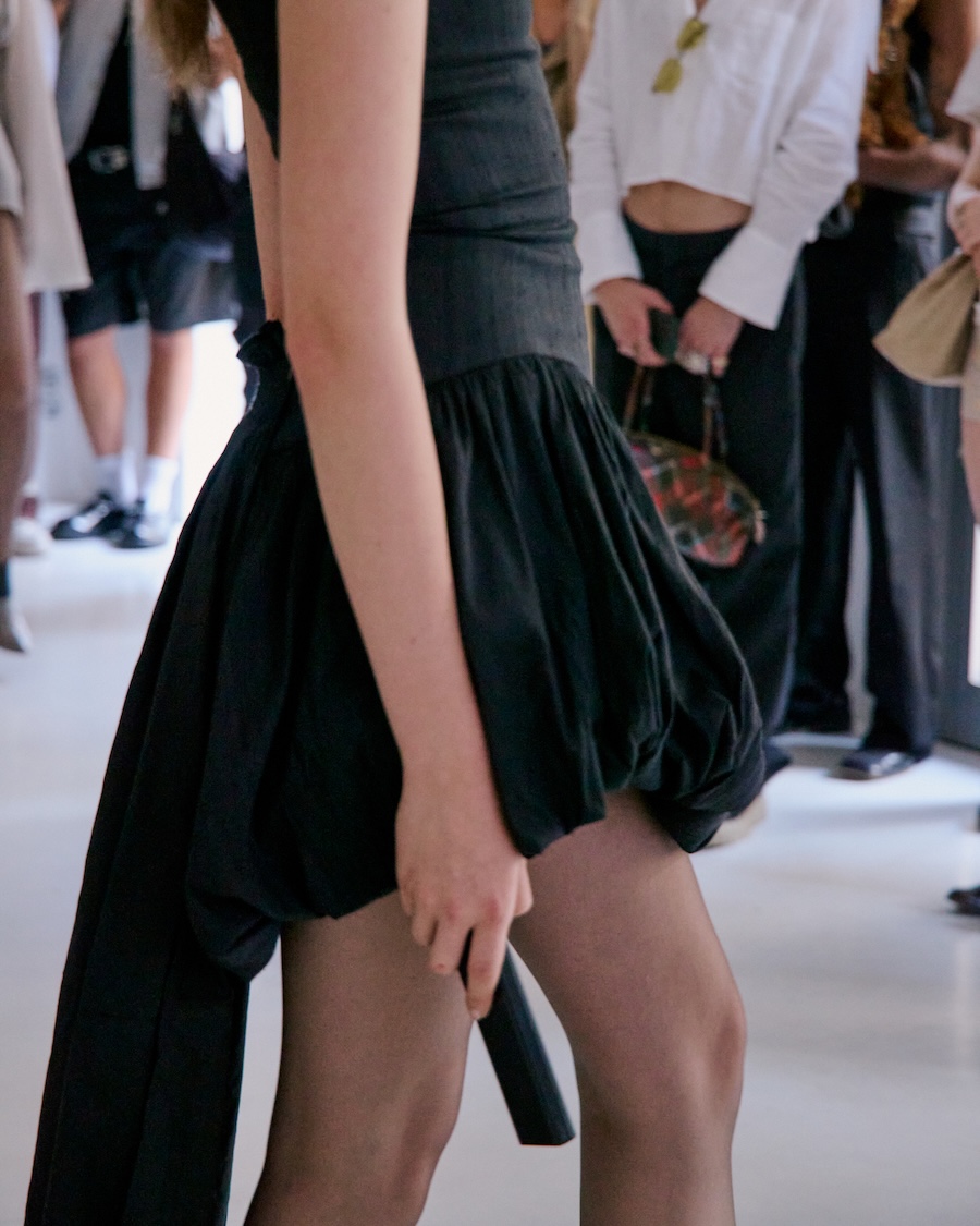 As the soundscape unfurled, it directed the models into a dance of subtle yet instinctive movements, enveloping the audience in an atmosphere of shifting presence. Each poised figure became a character in a larger narrative where movement, pose, and expression hinged on a commanding voice, a powerful reminder of how language shapes our perception of form. Here, failure, function, and pace were redefined, echoing through the unity of the models’ synchronised walks.
