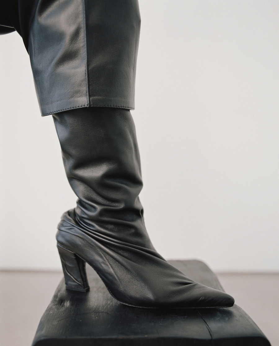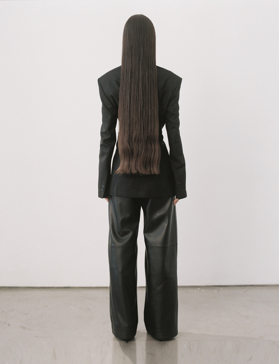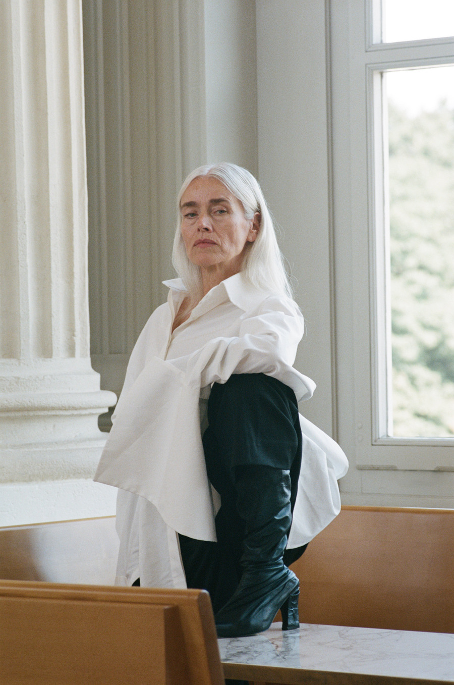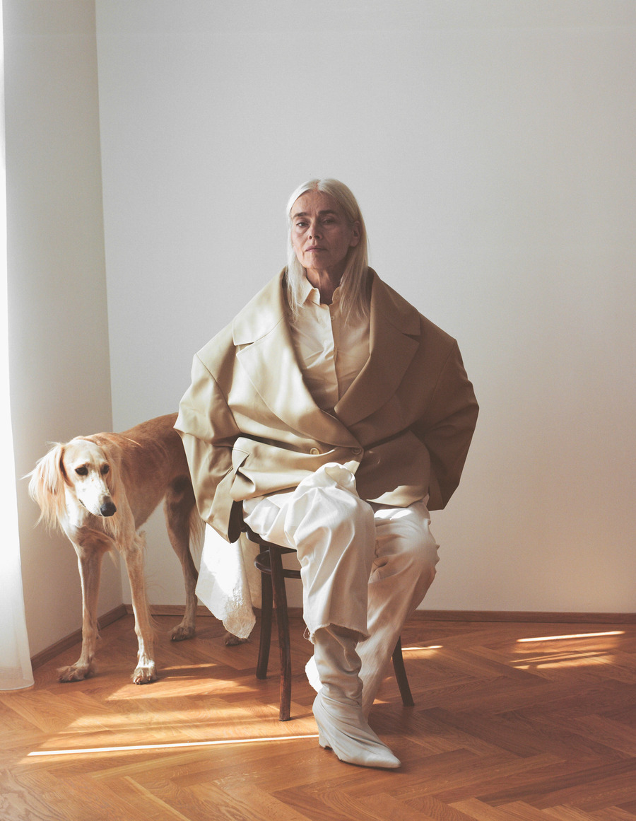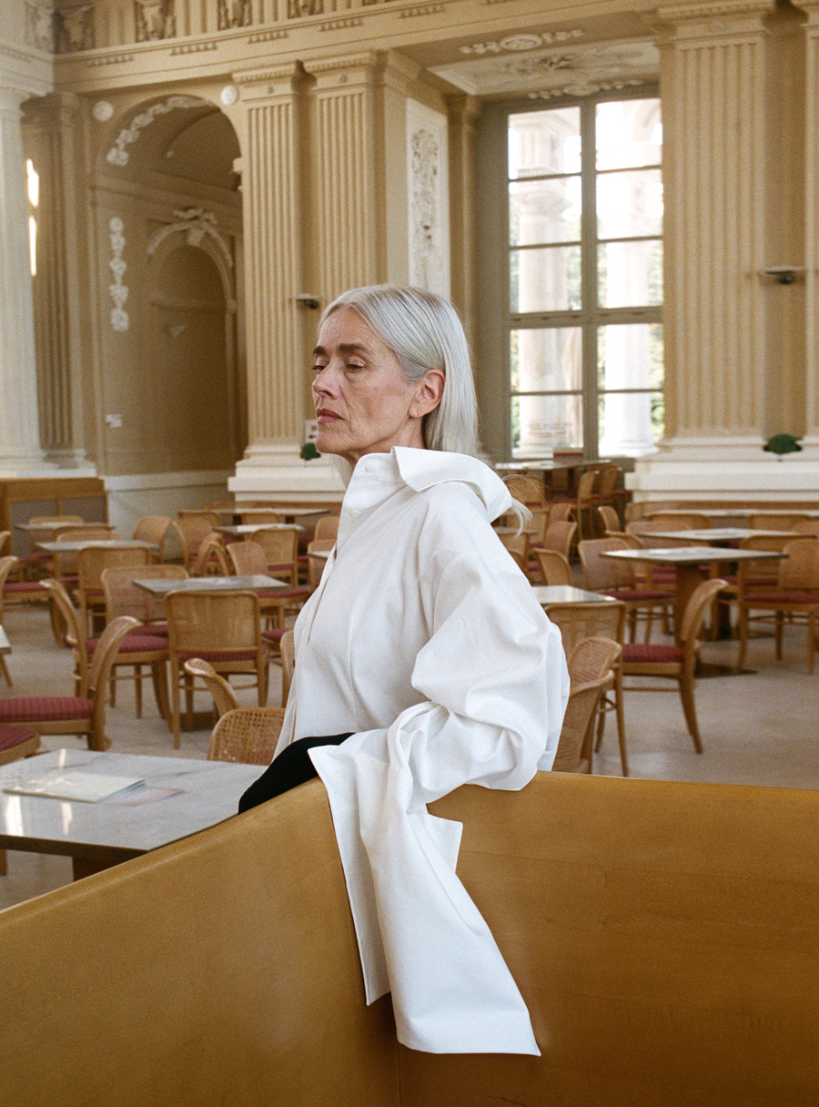 Inspired by “A Pigeon Sat on a Branch Reflecting on Existence” by Roy Andersson, a comedy as weirdly wonderful as its title, there’s no one moment of pure surreal flamboyance but it is a progression; the shifting and darkening of mood make narrative sense in context. The SS23 collection builds to an ineffable beauty on something surprisingly profound and interrupted. The styles are classic and so are the fabrics; crispy cotton shirts, wool jackets and soft leathers, however, turn them around and it’s a different story; exaggerated silhouettes, dramatic sleeves, asymmetric shapes, gathered fabrics by a string, or by deconstructed pleating. The broad array of neutral and muted tones emphasizes the refined lines of the silhouettes and blends with the facial features. There is something expected however unexpected un-fine-ness.