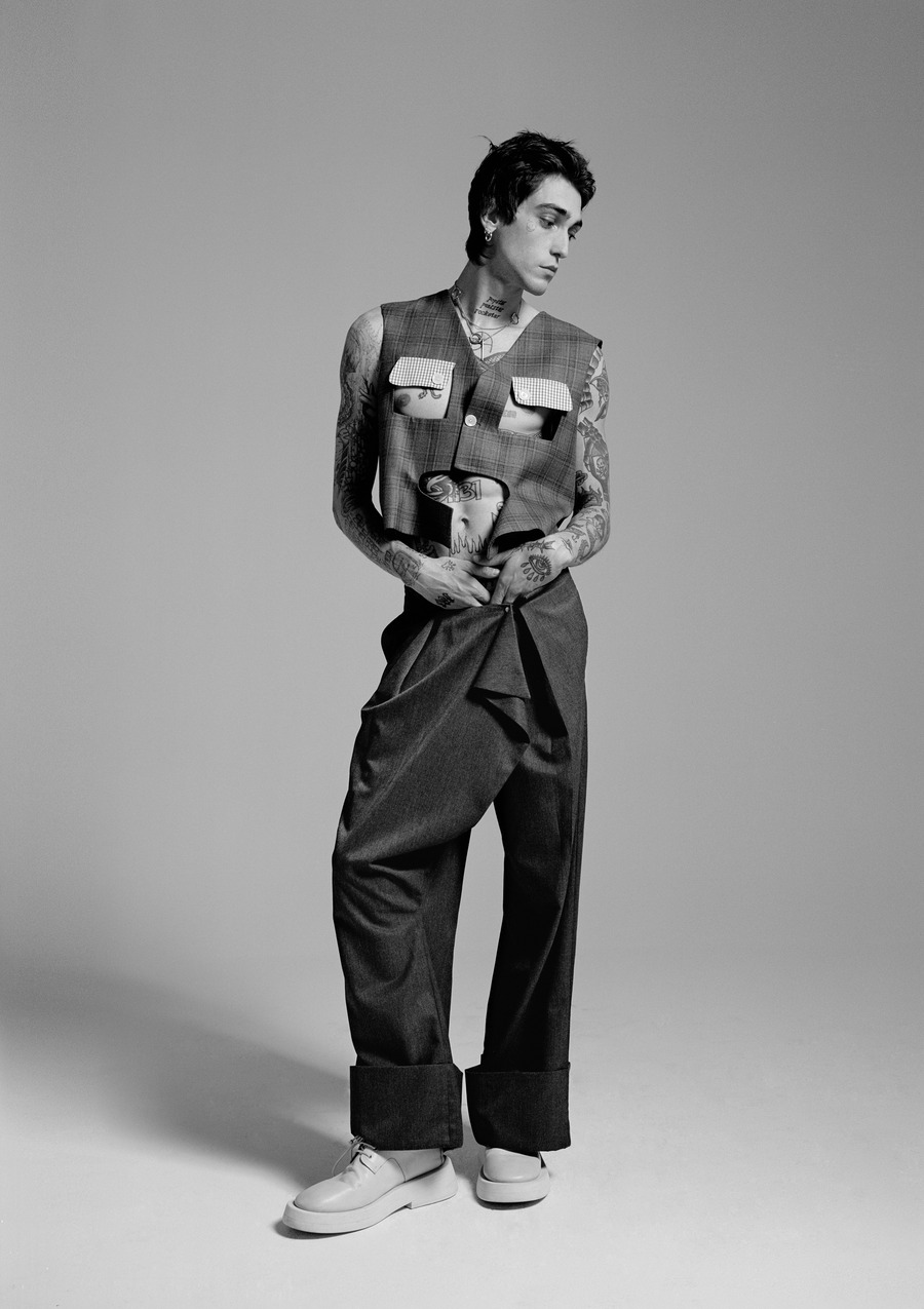 A KALTBLUT exclusive. Photography by Marco Donazzan. Fashion by Adele Baracco. The model is Victor Berlo. Make-up and hair by Lisa Lionello. Video by Luca Donazzan. Fashion by Marsèll, Arthur Arbesser, Alessia Rossetti, Andrea Alchieri, Garima Bhadra, Miryl Jewels, Luca de Prà, Falke, Sebago, Nicola Ghezzi, Goto, DTLTS, Miaoran, Dennj, Bonfilio Hat.