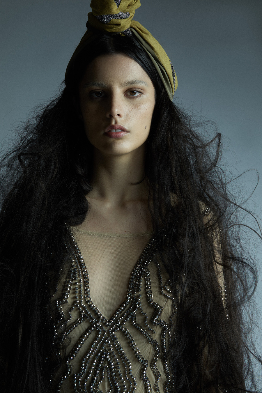 A KALTBLUT exclusive. Photography by María Fernanda González. Fashion styling by Tony Hortal. The model is Andrea U. Hair styling by Lindsay Brady. Make-up by Kikue Ichihashi. Digital retouching by Camila del Castillo. Studio is Cadàver Exquisit. Film scans by Revelab Studio.