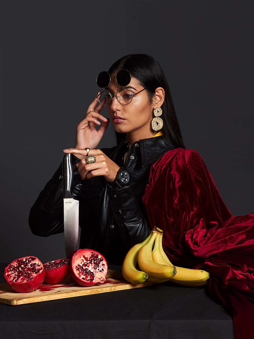 A KALTBLUT exclusive. Photography by Mariana Gallardo Klein. Model is Camila Cisternas. Make up by Sebastian Sabath. Styling by Arturo Varas. “We are a creative group of interdisciplinary artists eradicated in Chile, (Photography, styling and make-up) We work generating content together and we visually investigate Latin American identity from the language of fashion photography, we try to generate forms of resistance against the alienation produced by retail stores. We work in a circular economy, with second-hand, vintage and theater costumes, props in disuse, seeking, in our production of forms, to expand a bit the colonialist imaginary of the fashion industry.”