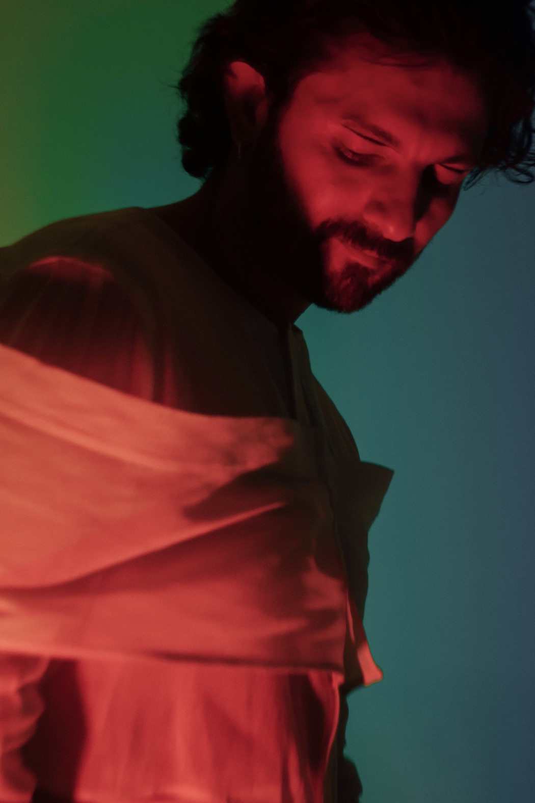 “As we find ourselves navigating the ‘new normal’ through this pandemic, ‘Shadow Dancer’ for me brings a great feeling of nostalgia for a form of connectedness and spontaneity that I, among many I’m sure, miss so dearly. The idea of creating a world around ‘Shadow Dancer’ as an eight-minute electronic track with no vocals gave me the opportunity to approach the project in a different way. After hearing the emotional and mental process Stephanos (Elninodiablo) went through in creating the track/EP along with its dynamic urgency, I was inspired to somehow replicate a journey one may have coming out of the shadows and into the night. We so often have to find our way out of darker times and surrender to new beginnings and I wanted to work with the idea of the two main characters shifting through five different stages; isolation, exploration, surrender, intimacy and euphoria. Ed’s scenes show him moving forward from isolation to euphoria and Pavel’s scenes are all in reverse as he moves backwards, both of them meeting in the middle when they sync in surrender.