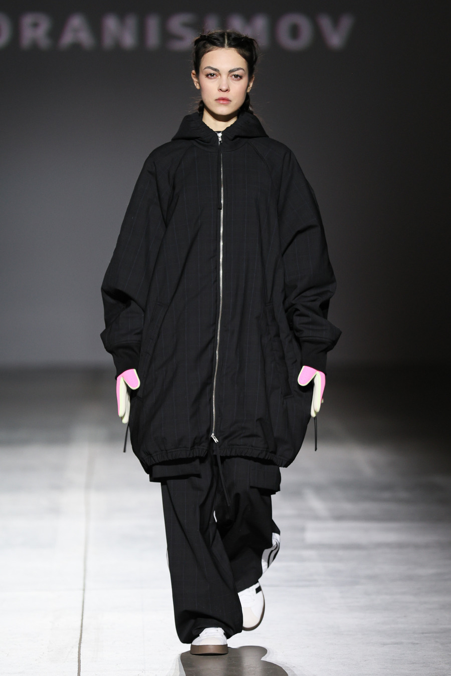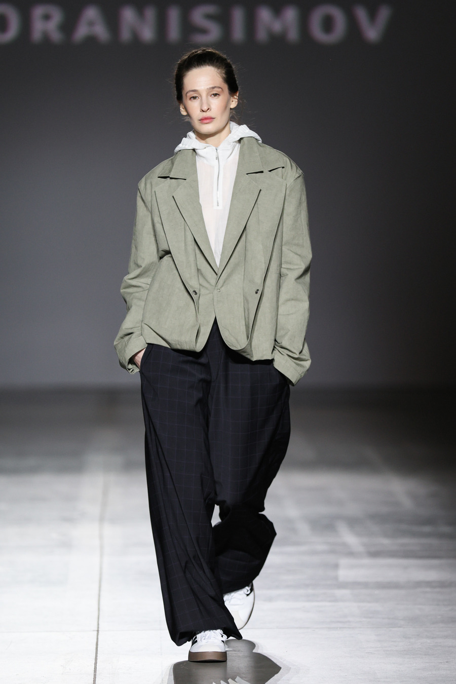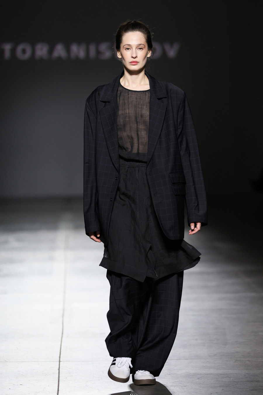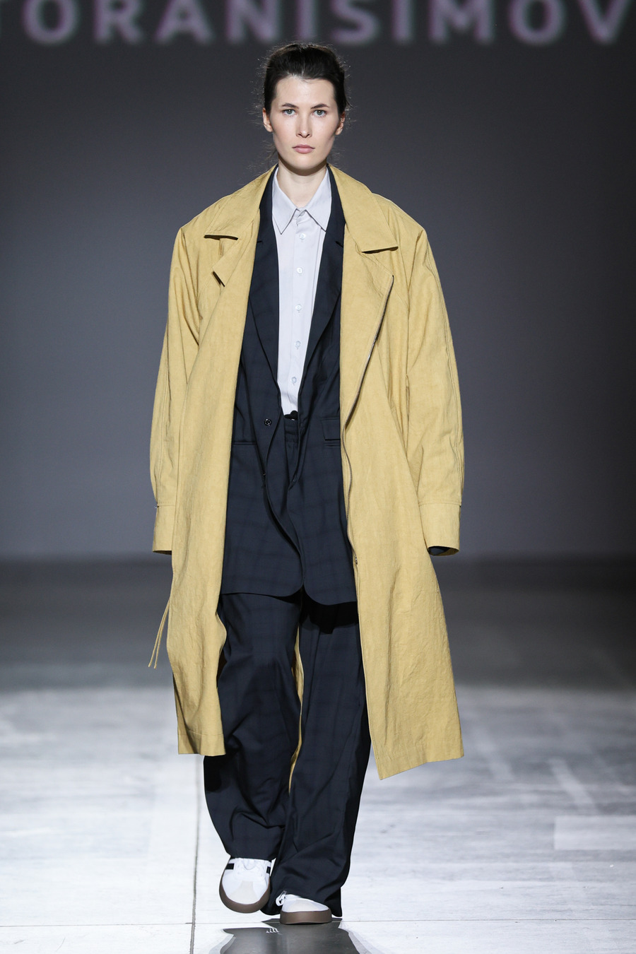 Viktor Anisimov remains firmly rooted in the foundational tenets of the VIKTORANISIMOV brand, continuing to delve into themes of versatility, functionality, and the deconstruction of traditional fashion narratives. Central to the &yellow line is the evocative concept of multilayering—exploring how garments evolve through their lifecycle—from cherished pieces worn during formative moments to functional attire in our casual wardrobes. The designer reflects on this transformation, illustrating how a once-revered jacket, donned for special occasions, can gradually find new life as a sports staple.