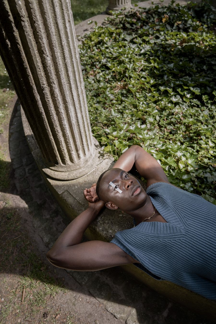 A KALTBLUT exclusive. Photography & Art direction by Maximilian Schwarz. Model is Kossivi Aholy. Styling by Christina Sommerfeldt. Makeup by Elisa Njoku. Location is Ohlsdorf Cemetery / Hamburg.