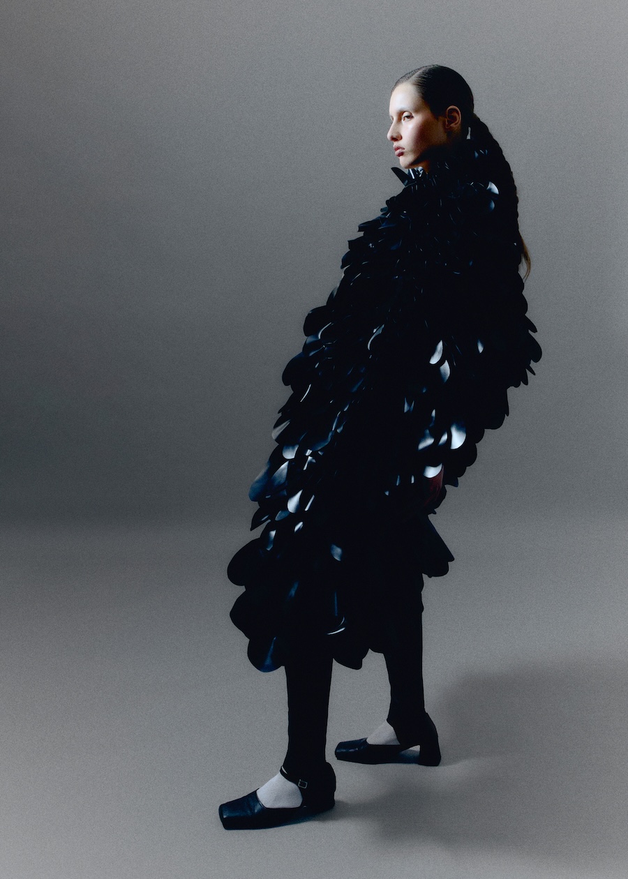 Through five looks, the story follows the process of learning to feel, express, and protect one’s inner peace. The styling and silhouettes by Elene Bakhtadze show the transformation from restriction to vulnerability and finally to confidence and strength.