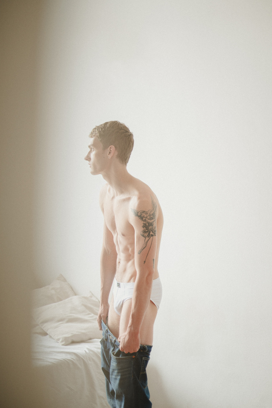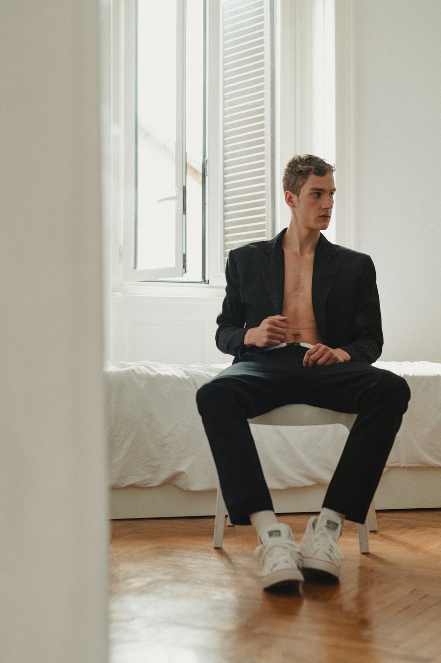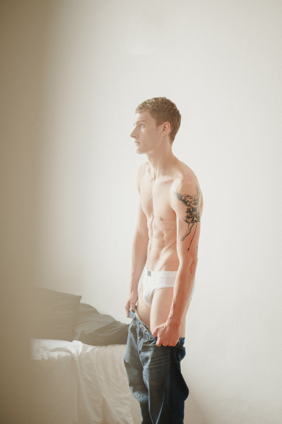 A KALTBLUT exclusive. Photography by Carlotta Leone. The model is Thomas Lazzara. Make-up by Lavinia Vieceli. Styling by Martina Lissi using Diesel, Calvin Klein, Intimissimi, Adidas, Converse and Giorgio Armani.