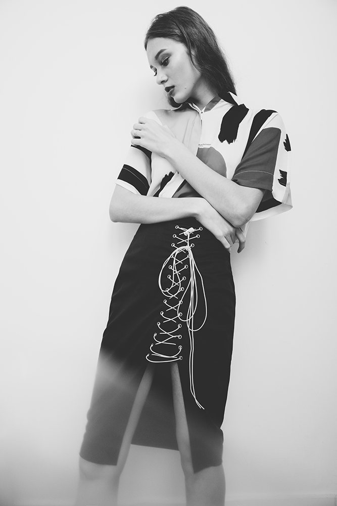 A KALTBLUT exclusive womenswear editorial. Photographer Mamen Fajardo captured Marie Konor signed at Uno Models for us. Styling, hair and make up by Daisy Zhou. Fashion by JARA MALDONADO, LEYRE VALIENTE, IKONNIKO amongst others.