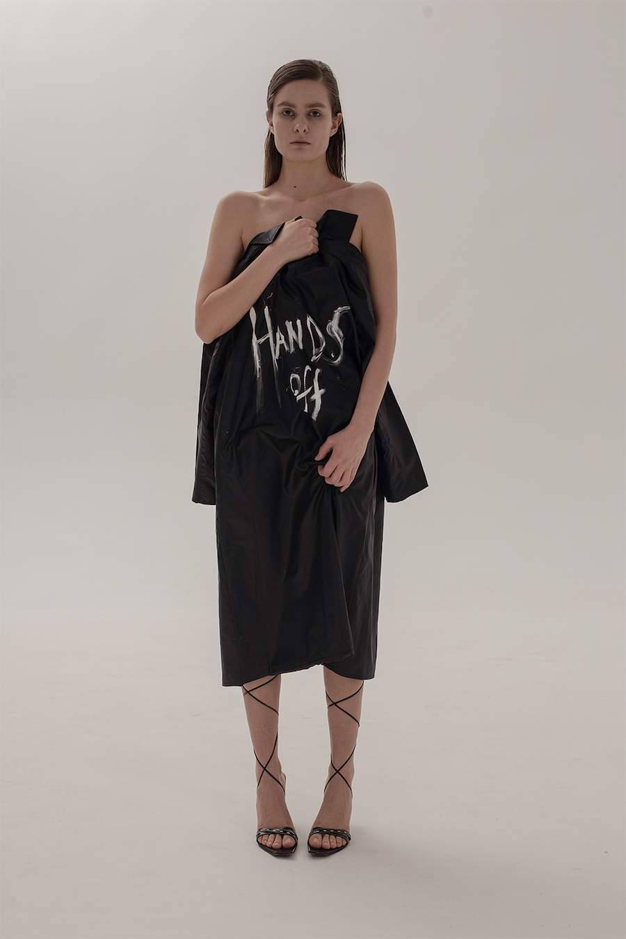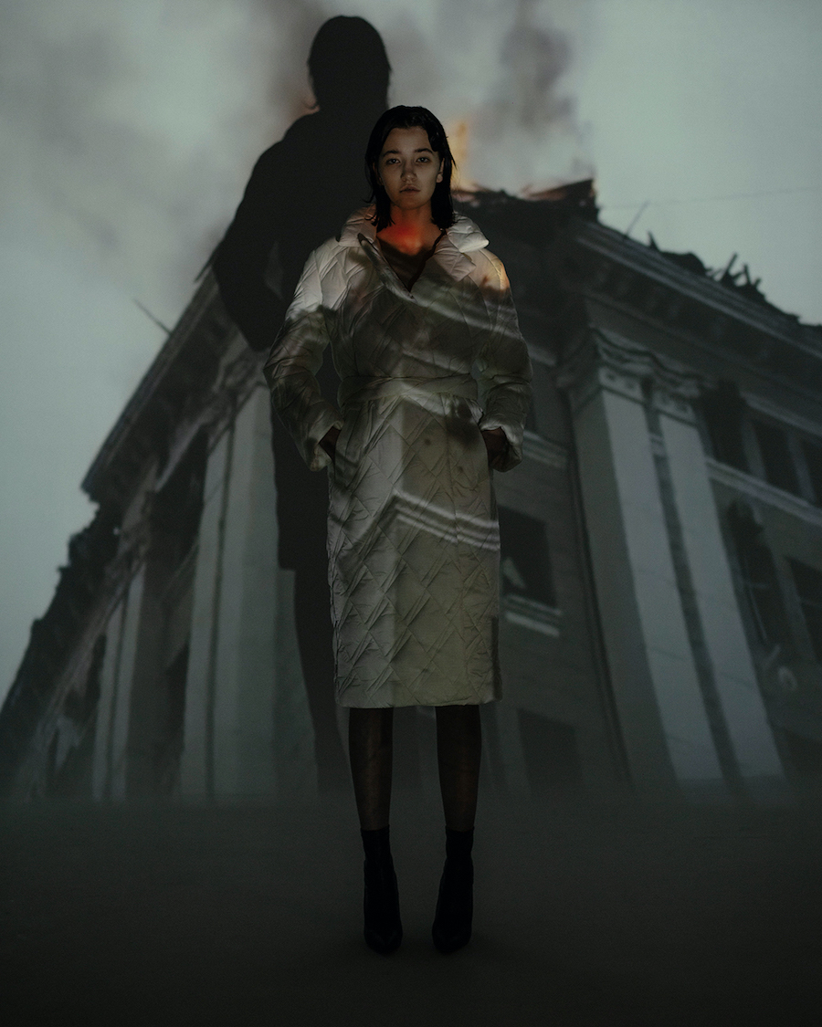Art is defined as one’s form of expression, of thoughts, feelings, ideas, beliefs, and values. We wanted to spread awareness and bring attention to these atrocities. As creatives in the fashion industry, this editorial was the only way we knew how to protest against these criminal actions. The photos showcase authentic footage from the war frontier and portray symbolistic, yet true episodes happening in Ukraine every day. We STAND WIITH UKRAINE and we say HANDS OFF.”