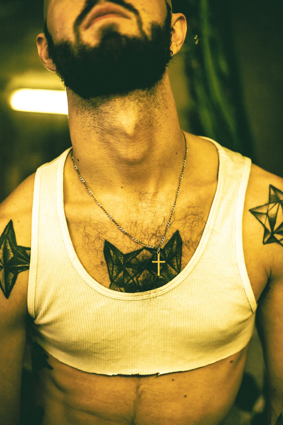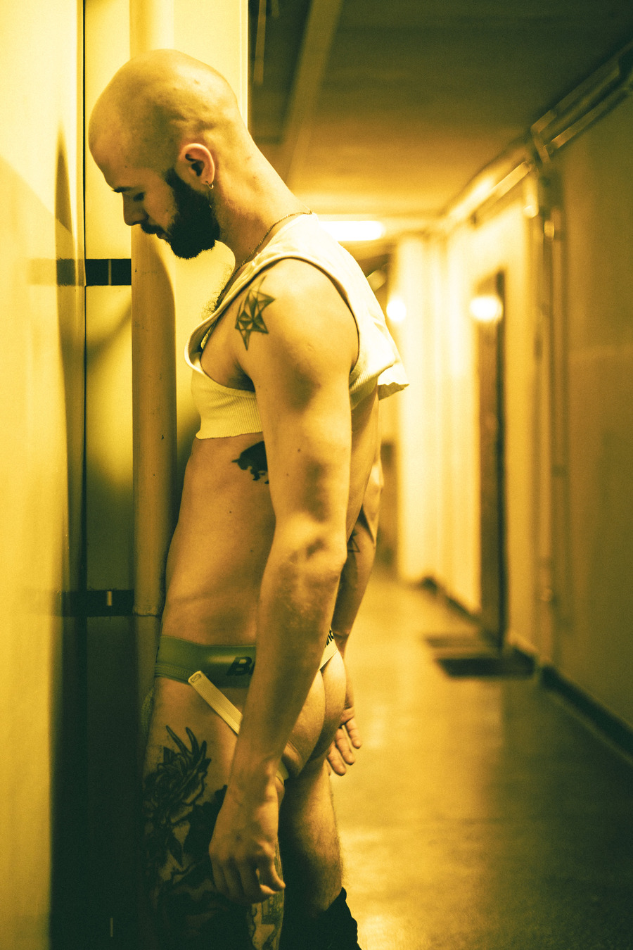A KALTBLUT exclusive editorial. Photography by Eran Evan. The model is Tomasz. “I’m Israeli, based in Tel Aviv. This session is a part of an ongoing project for the past 4 years, I do in Poland – Visiting it, meeting LGBTQIA+ people and talking about their experiences. Both Israel and Poland are going through harsh times of going deep into extreme right-wing religious changes, LGBTQIA+phobia and Xenophobia. Tomasz, the Subject/Model lives in Warsaw. Through the early stages of coming to terms with being gay, years ago, He went deeper into Christianity and this is the reason for the Crucifix tattoo on his back, a “souvenir” of his younger days.” *Eran Evan