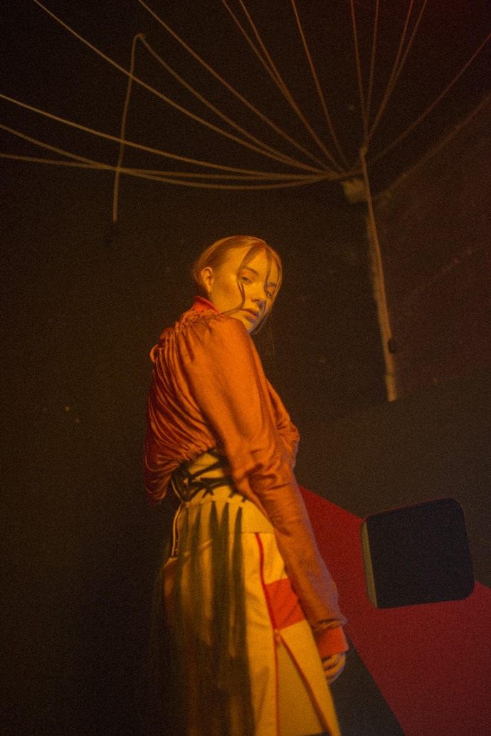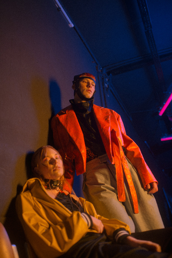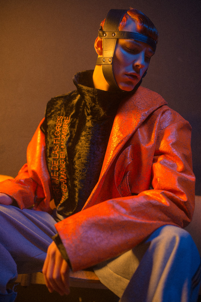 A KALTBLUT exclusive. Shot in the Goethebunker in Essen (Germany) by Nathan Ishar, a photographer based in Cologne (Germany) and Antwerp (Belgium), Daniel Cabrera’s Graduate Collection took inspiration from one of the many examples of cultures being overtaken by others: Mexico, where his own roots lie. „Proud of its perseverance to stay true to itself and the courage that drove its people to take up arms against those who came into their world to enslave them, steal and loot their most precious treasures and to tear apart their culture. I am proud of the courage that it took in order to fight for their freedom and gain their independence back, one that should have never been in the hands of any other nation. This collection is a homage to the cultures which, despite the circumstances, never let their roots die neither in spirit nor in existence.“ Models are Samir Duratovic and Lisa Steinmeier both at Aquamarine Model Management.