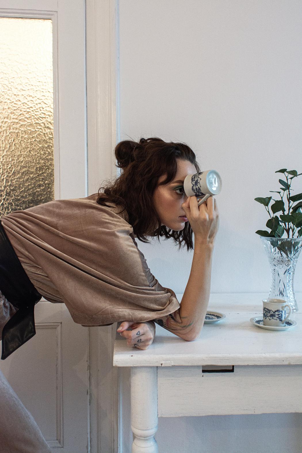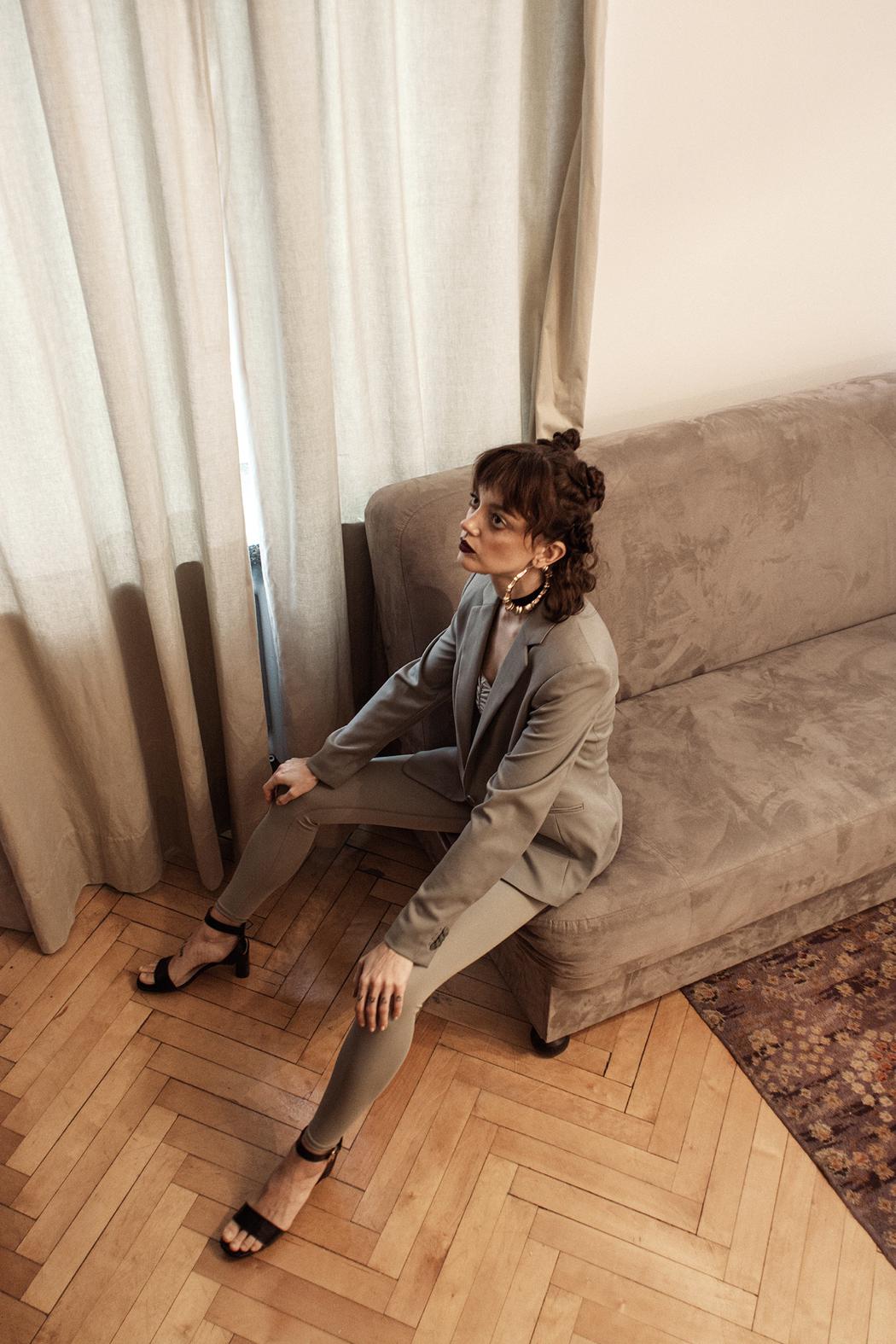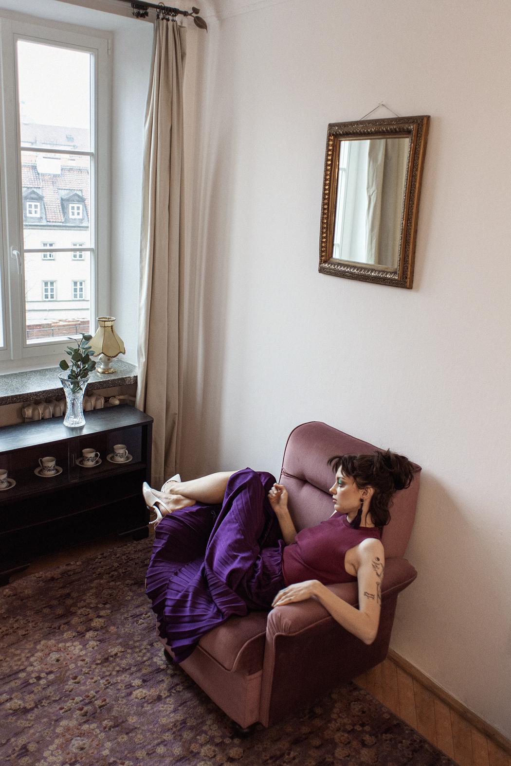 Julia Klyukach is a photographer based in Warsaw. This photo shoot kept firmly in the spirit of the Polish People’s Republic, that’s why it took place in a flat moderned on this style (old colourful armchairs, turkish rugs, wooden furniture etc.) The time of paradox and detachment from reality is to emphasise the strange poses of the model even more.