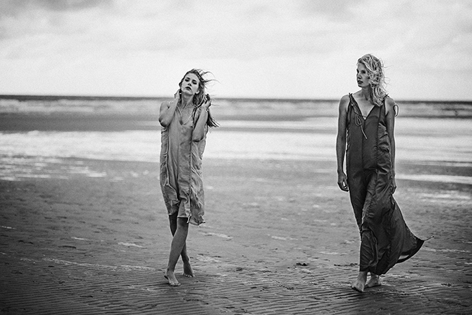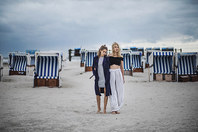 A KALTBLUT exclusive womenswear editorial. Photography by Veronika Bures. Models are Fabia & Lisa signed at Most Wanted Models. Styling by Dana Elena Schweika. Fashion by Bershka, ASOS, Dana Elena Schweika, Johnny loves Rosie, Pretty Little Thing, New Look. “I am a 26 year old photographer and designer based in Munich. Currently, I study design in the seventh semester and it is a great experience to expand my abilities bit by bit. About 10 years ago, I started to become familiar with taking pictures and soon it turned out that people are the most fascinating object to me. It is my greatest passion to tell stories which are connected with fashion and I think that there is nothing more important than developing an awareness for people and emotions in this superficial world. This last fashion editorial called – WESTERHEVER – has been shot about three months ago in Nordfriesland, Westerhever. I drove there about eight hours by car and when I finally arrived, I just found myself in another world surrounded by this very special northern breeze. For me, it was more than just producing an editorial at the sea. It was a journey which took me back to another kind of reality and somehow back to myself. My heart was lost in the world and it was found in the North. Thanks to my great muses Fabia and Lisa who provided me an insight to their souls and who were not disturbed by this rough sand storm. Thanks to the very talented, young designer Dana Elena Schweika. Stay focused.” – Veronika Bures