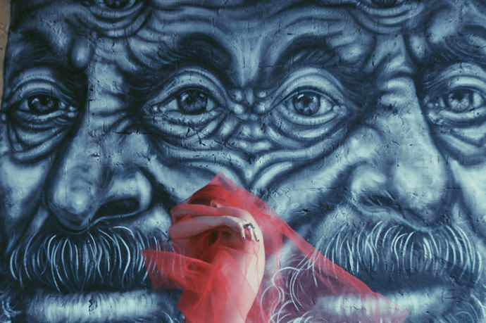 We spent the day wandering and working with the environment as well as this bold, red fabric. Our idea was to produce empowering and body positive portraits that narrate the vital lifeline that connects and isolates the “female” in this particular space and overall, women’s responsibility of the world. ”