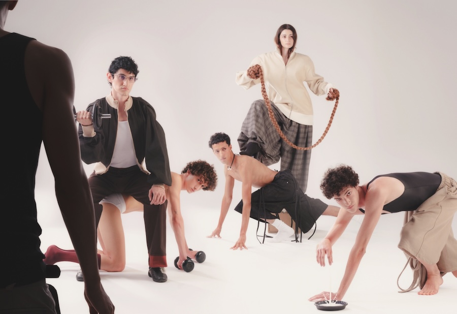 Across six visual chapters and a series of portraits, the work questions how bodies inhabit clothing, how they connect, and how they break down. The photographs reveal fragile, intertwined figures, machines of effort and intimacy, suspended between attraction and fatigue. Through the collaboration with Guillermo Justicia, fashion, photography, and art converge to dissolve boundaries between image and emotion, transforming the body itself into a question.