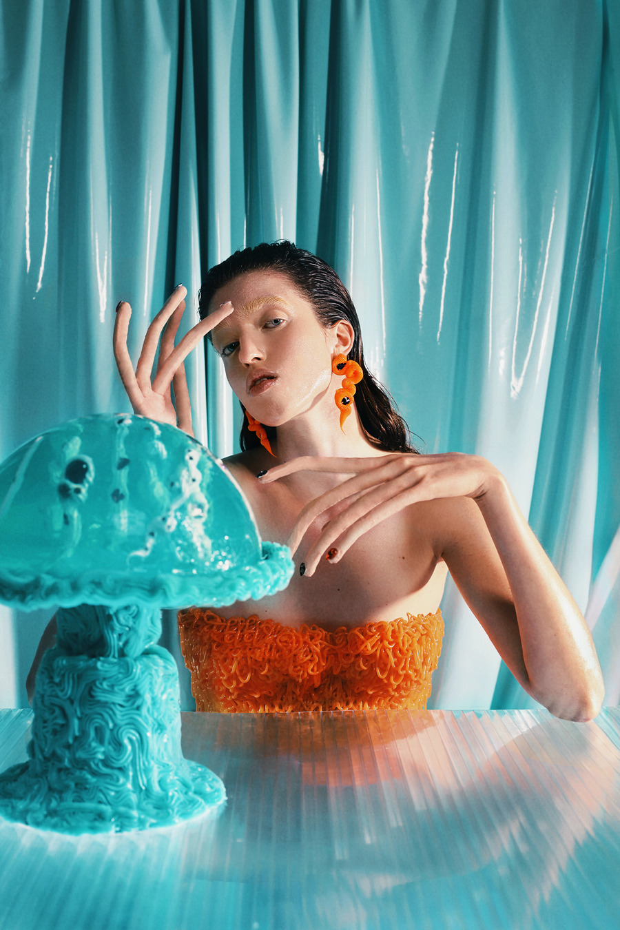 KALTBLUT presents the new Whipped Jewels campaign. Photography by Carlos Victimo. The model is Riva Keuning signed at The Coven Models. All the garments and accessories were made in-house by House of Rubber.
