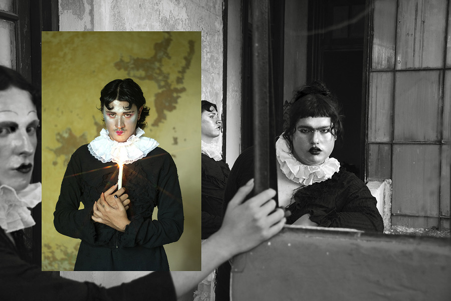 “Souls without sorrow roam what was once a home, playing at eternal life through the joy lasts but a whisper. This series of portraits seeks to reclaim the nostalgia that reinvents itself every day to coexist with us, much like ghosts do. Wrapped in a mysterious yet fashionable aura “Whispers from the Past” invites us to play through Alice’s looking glass.”