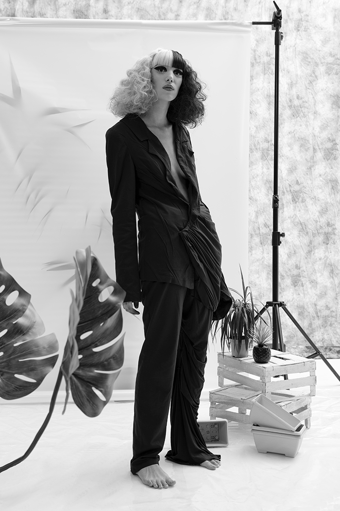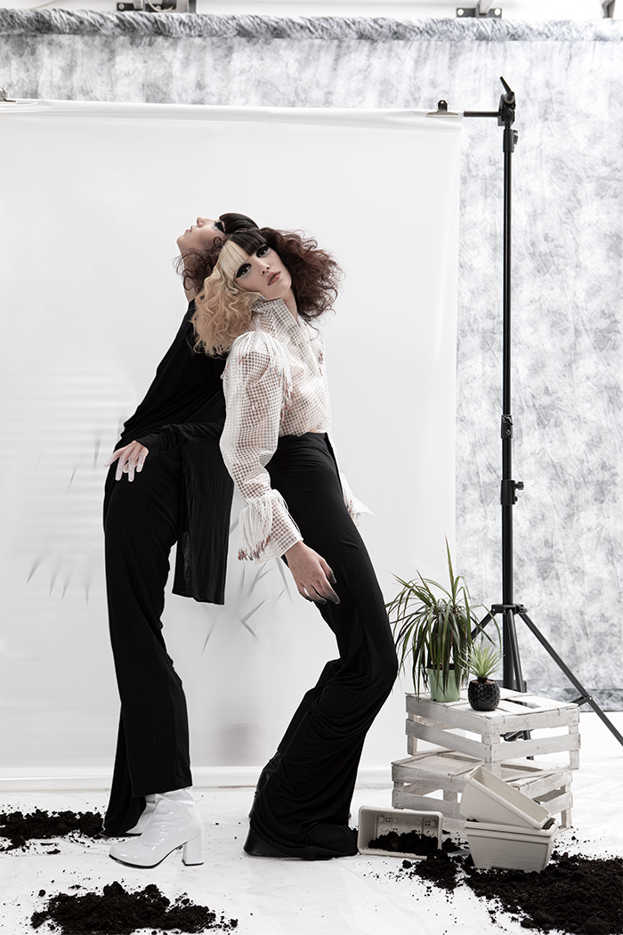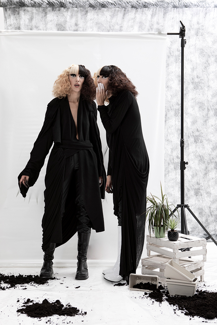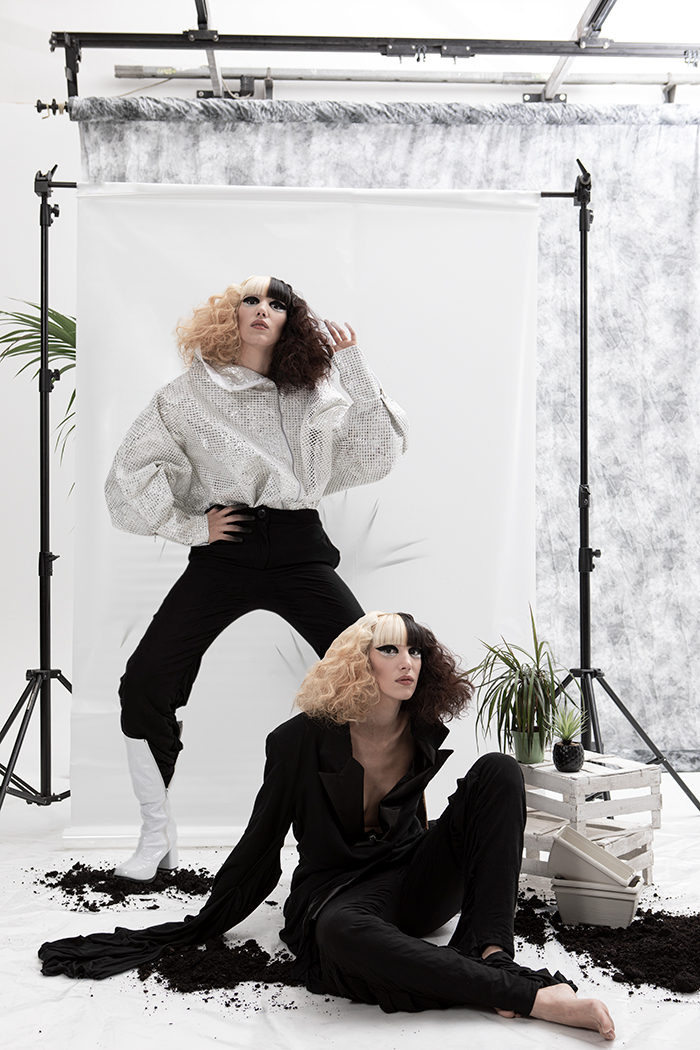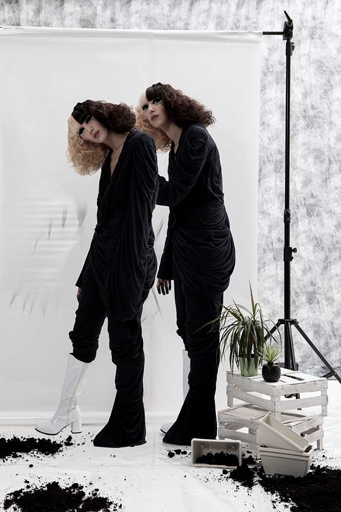 Who am I? Petra is one single person; but in this fashion editorial she appears double. Double as if she was two twins reborn from soil. She decieves the reader into a dualism represented by a black and white theme. Photography by Ruggero Lupo Mengoni. Model is Petra Ceseri. Styling by Vanessa Bartalesi. Make-up by Giulia Petreni. Hair Style by Giancarlo Parisi. Brands are Ambra Meineri, Fabio Lonardi.