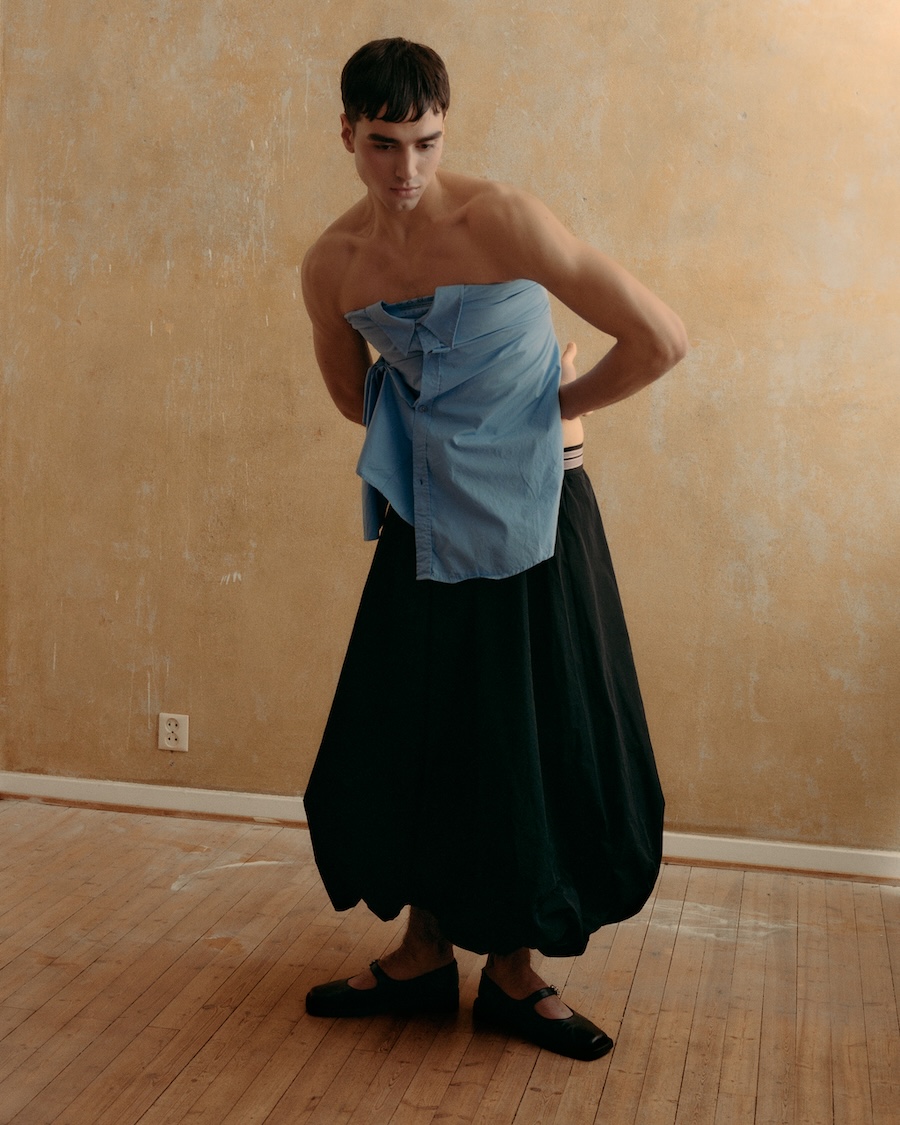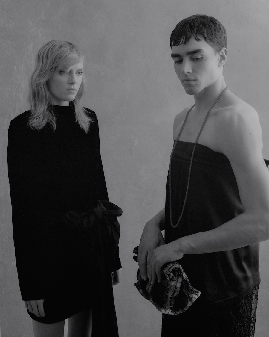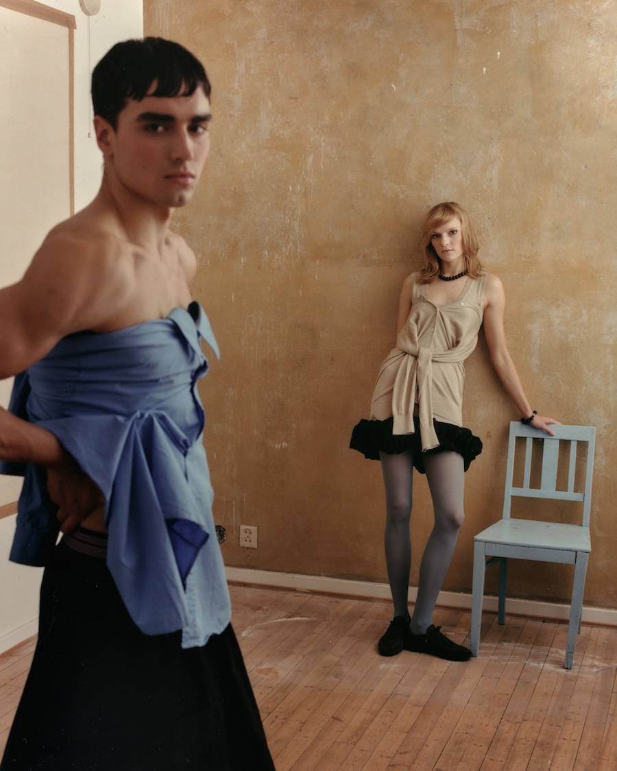 A KALTBLUT exclusive. Photography by Iver Ambrosius. The models are Ksenia Nova and Haralds Deksnis. Styling by Frida Sulistiono. Make up by Aurora Indianna. Lighting by Cameron Daravi. „Who are you when you’re not looking“ explores the quiet, surreal space that appears when self-awareness dissolves, a psychological and emotional threshold where identity softens, and the body moves without performance. This is the world we slip into when we stop monitoring ourselves, where logic loosens, and instinct takes over. A place that feels more honest than reality, yet slightly uncanny.