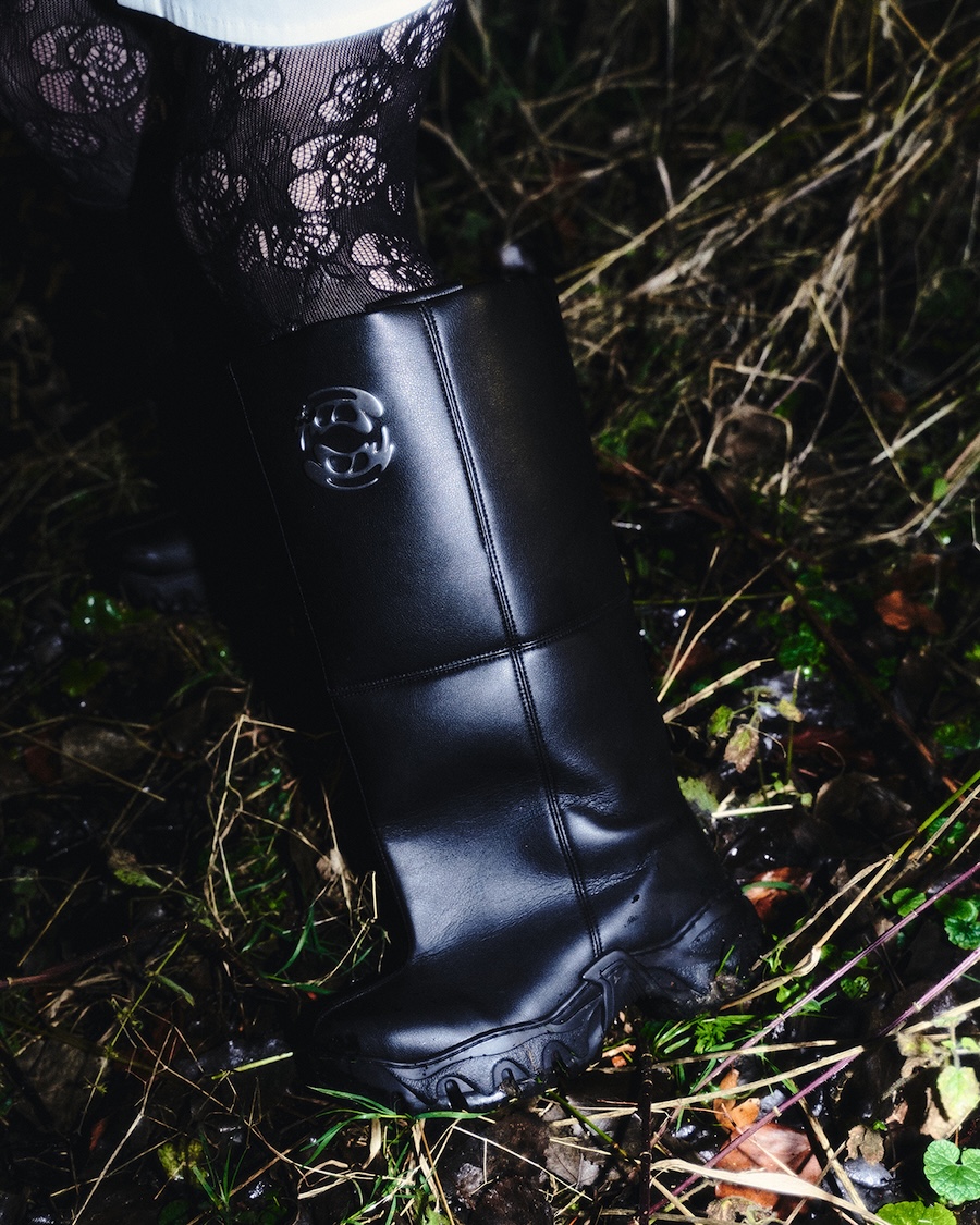 This collection sees FIELD of PONIES experimenting with new materials such as satin, velour, alpaca jacquard, fine ribbed jersey and neoprene. New shapes are introduced, such as a bodysuit, a button-up shirt, frilled high-waisted trousers and padded leg warmers.