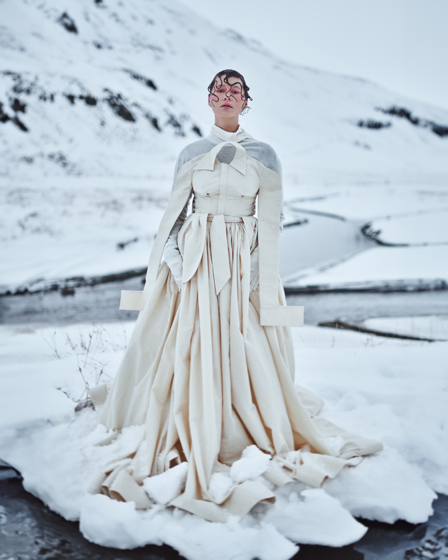 A KALTBLUT exclusive. ’To the Beyond’ is the final instalment of an independent fashion & art project created and photographed by Marc Haers. Travelling to Iceland with his team, Marc wanted to capture the isolation and harshness of the island. A feeling he had felt strongly after dealing with a sudden loss. The imagery also speaks to the hardships in life we all deal with as human beings and how working through things together can make the most challenging times easier. Marc attempts to transform trauma and pain by infusing it with beauty, fashion, art and creativity, ultimately resulting in a fantastical yet honest story.