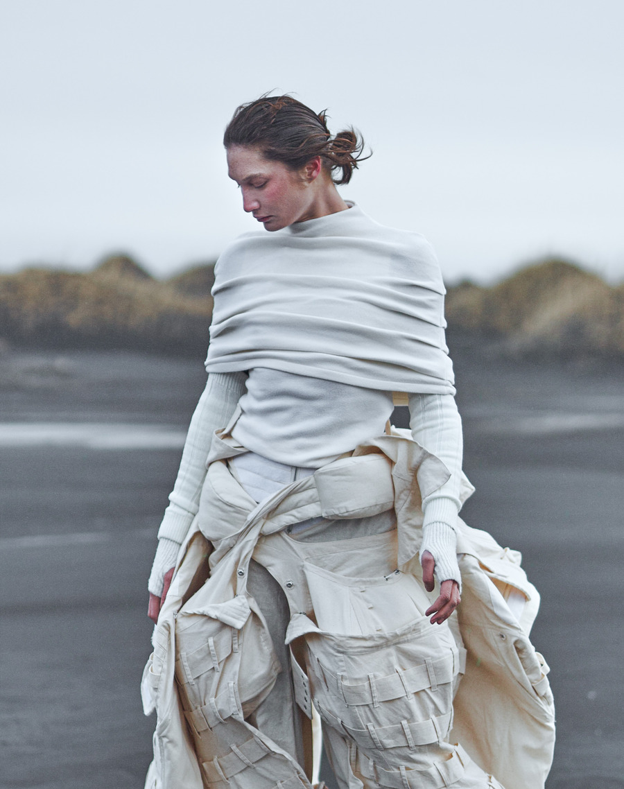 A KALTBLUT exclusive. ’To the Beyond’ is the final instalment of an independent fashion & art project created and photographed by Marc Haers. Travelling to Iceland with his team, Marc wanted to capture the isolation and harshness of the island. A feeling he had felt strongly after dealing with a sudden loss. The imagery also speaks to the hardships in life we all deal with as human beings and how working through things together can make the most challenging times easier. Marc attempts to transform trauma and pain by infusing it with beauty, fashion, art and creativity, ultimately resulting in a fantastical yet honest story.