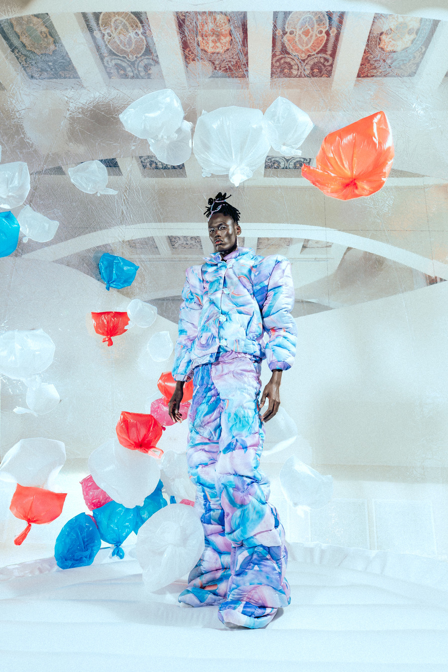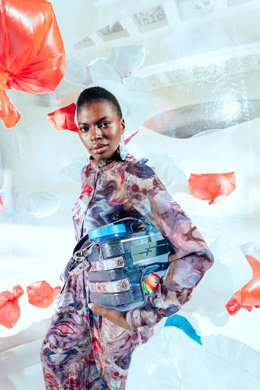 For their next venture, Impari proposes an editorial feature titled “World of Trash Treasures” for consideration in KALTBLUT Magazine. This conceptual series delves into the transformative potential of plastic waste, revealing how these materials can be converted into breathtaking artistic artefacts that harmonize sustainability with artistry.