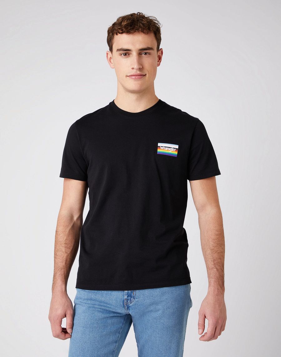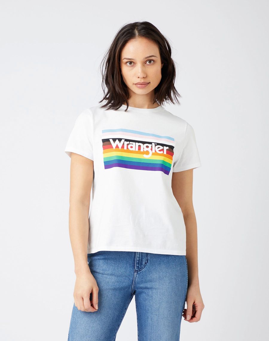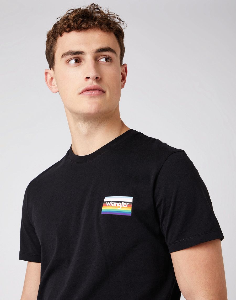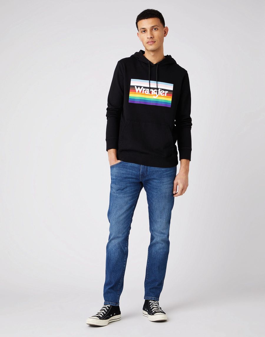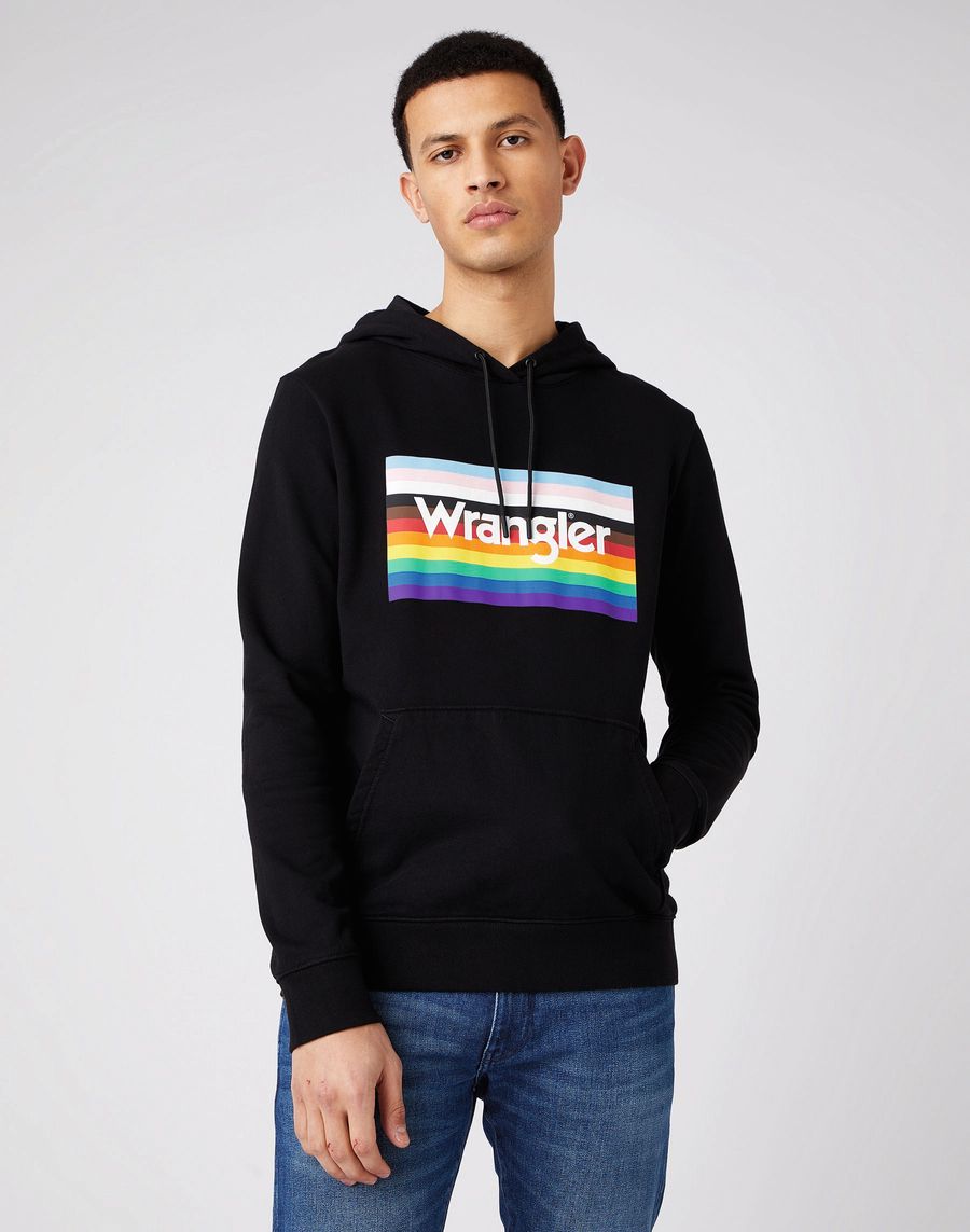 Wrangler’s limited collection includes black and white cotton t-shirts, tank tops and hoodies with a striking rainbow on the chest. On the back of each is an encouraging message of empowerment that represents the original rainbow flag, designed by Gilbert Baker in 1978, with statements such as “love”, “healing” and “harmony” – #WranglerPride