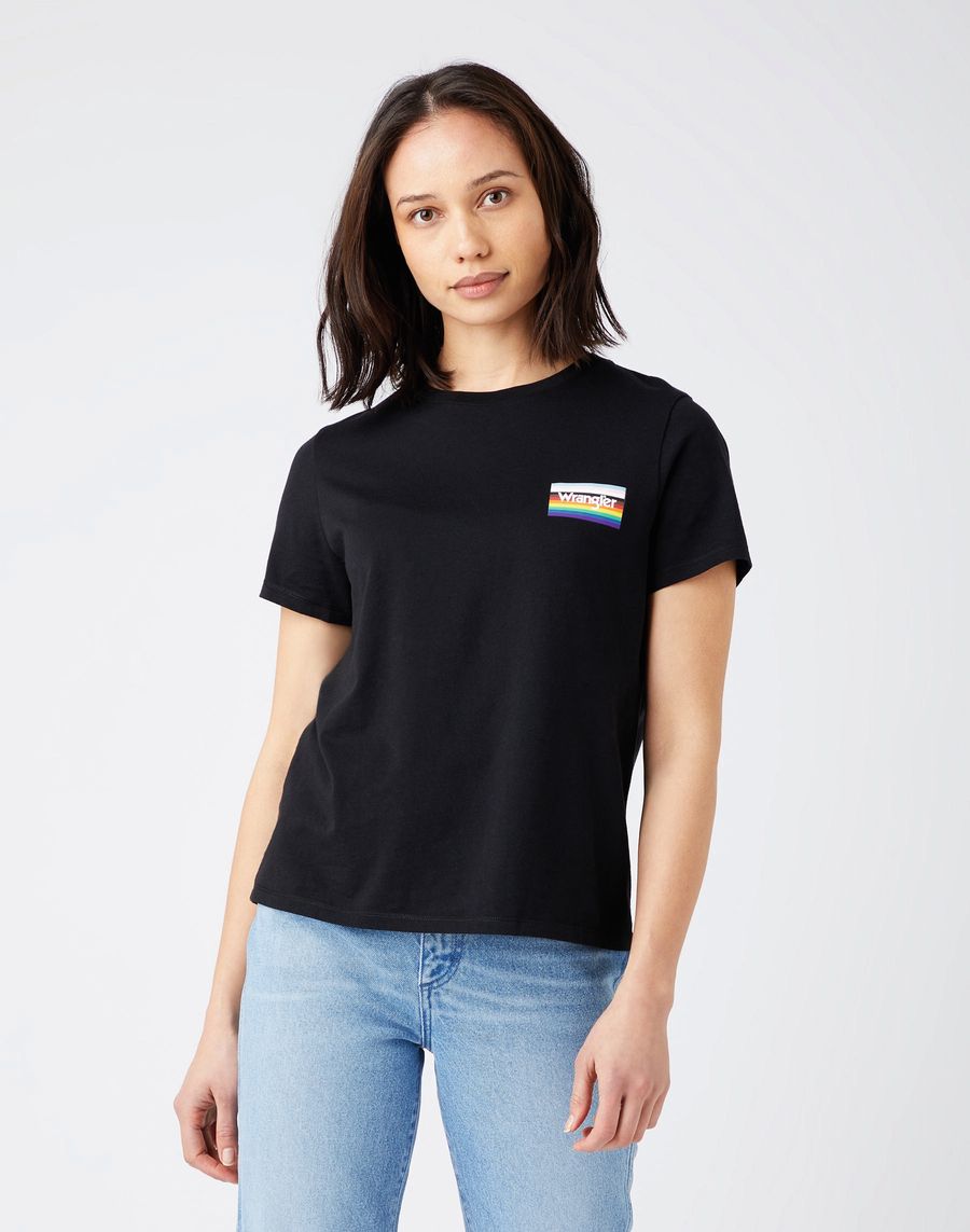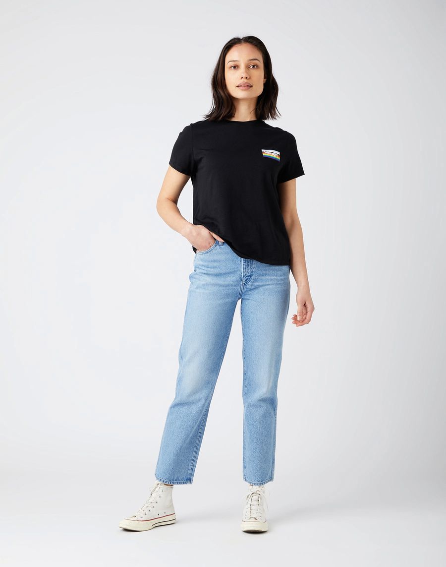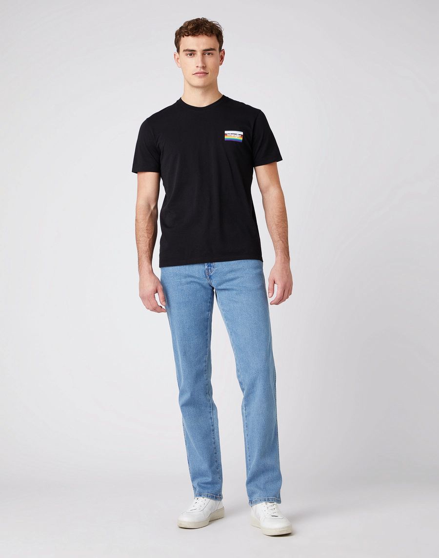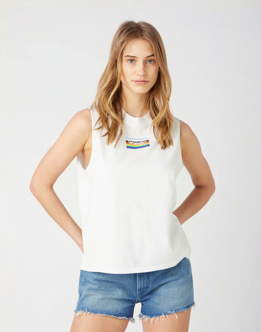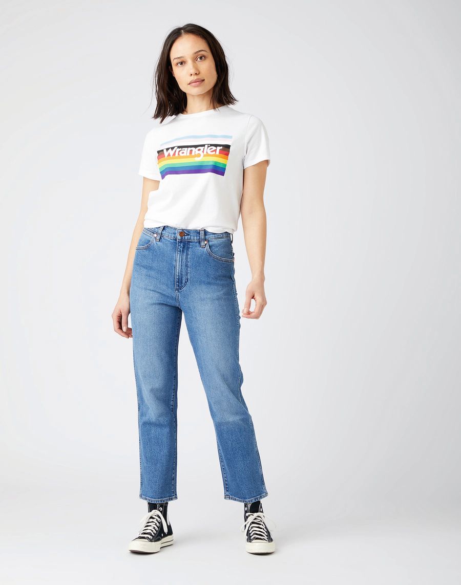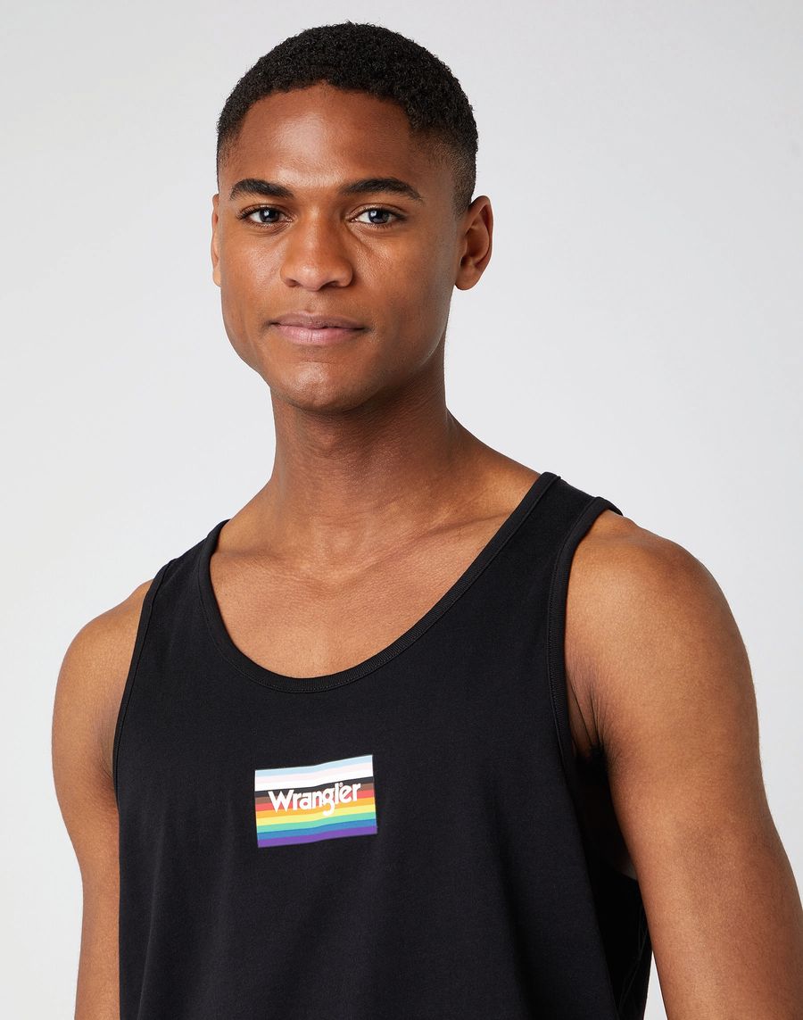 Wrangler’s limited collection includes black and white cotton t-shirts, tank tops and hoodies with a striking rainbow on the chest. On the back of each is an encouraging message of empowerment that represents the original rainbow flag, designed by Gilbert Baker in 1978, with statements such as “love”, “healing” and “harmony” – #WranglerPride