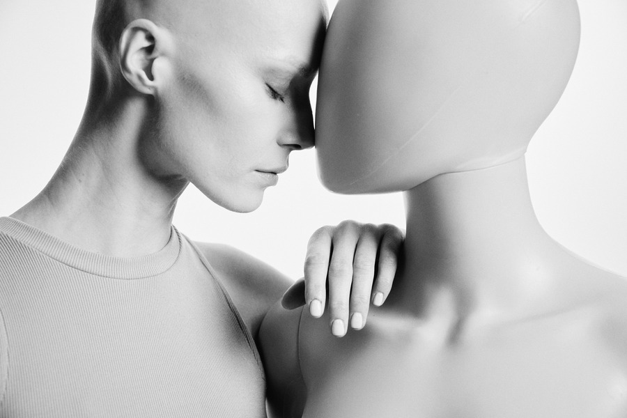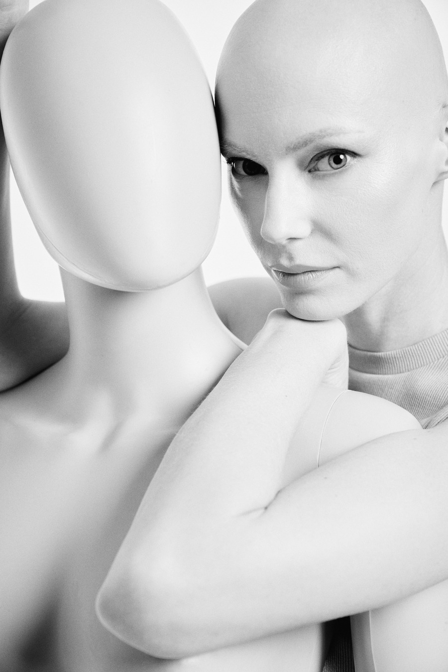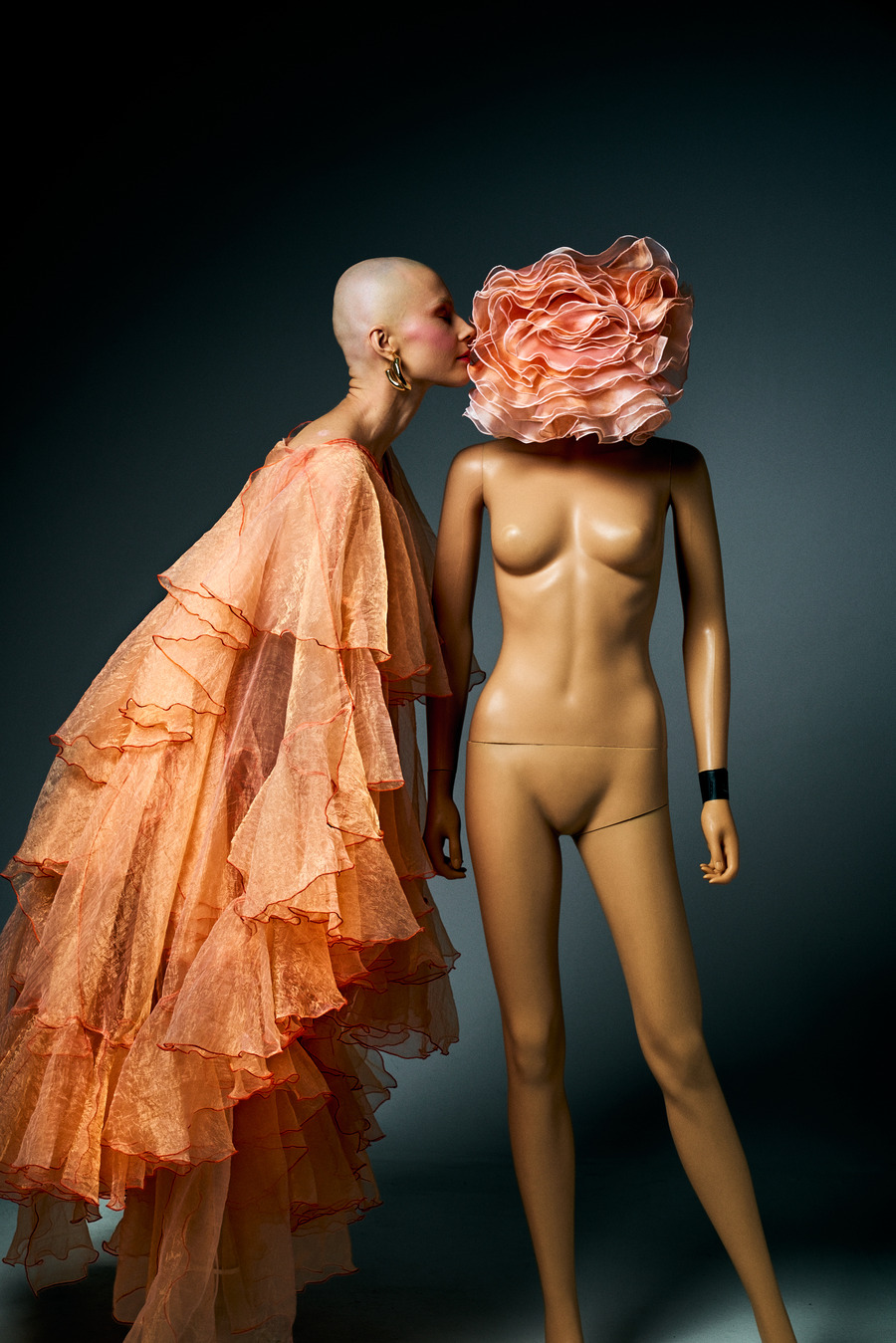 “We see a woman who is a symbol of courage and authenticity in a reality that often defines us based on our external appearance. She is accompanied by a mannequin, an inanimate form that contrasts with her lively, emotional presence. The mannequin, although perfect in its appearance, remains cold and absent. She will never be able to show her true self, no matter how up-to-date she is with current trends. Style is not just clothing, it is also a way of being, it is the acceptance of who we are, regardless of the momentary modifications that may come and go.