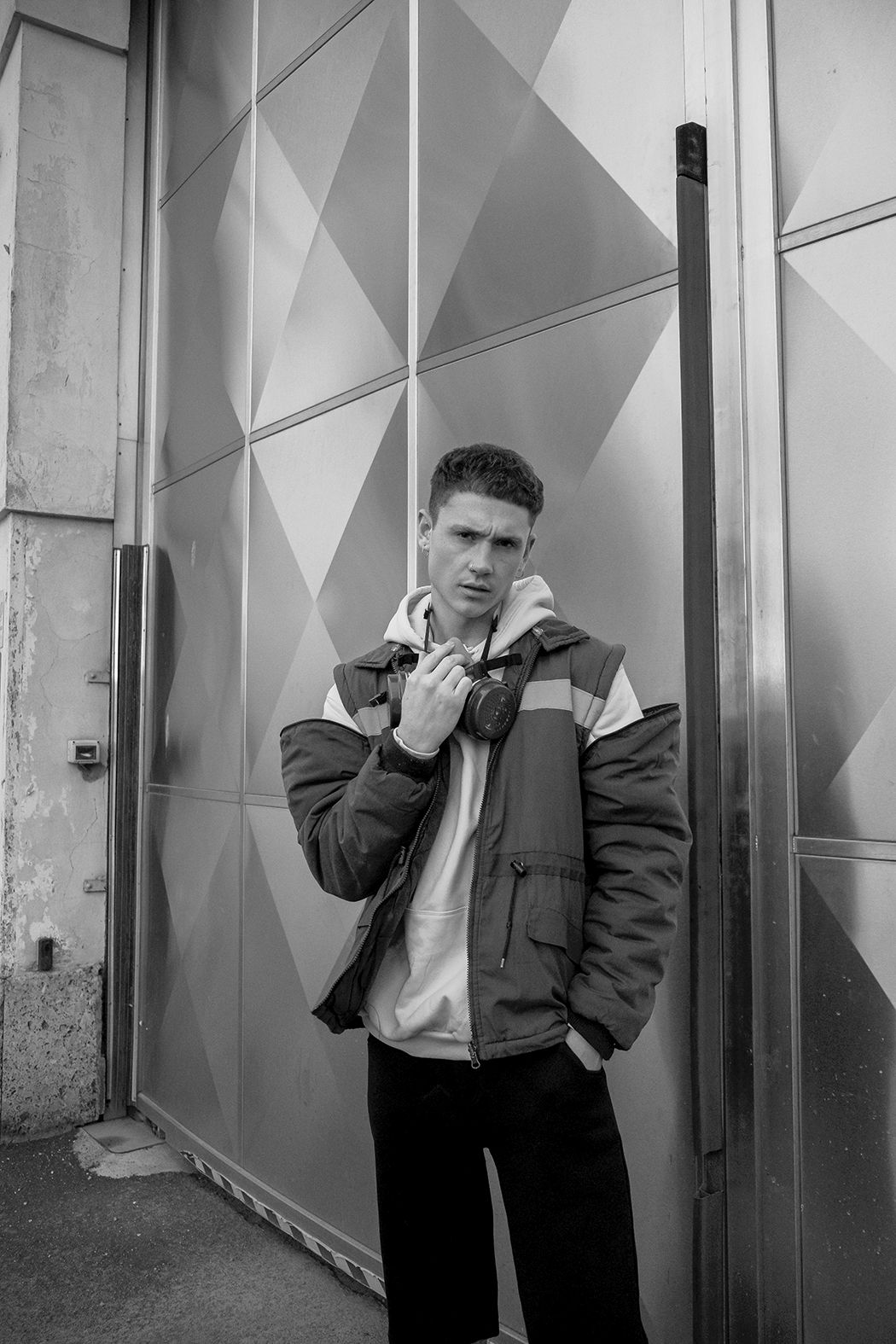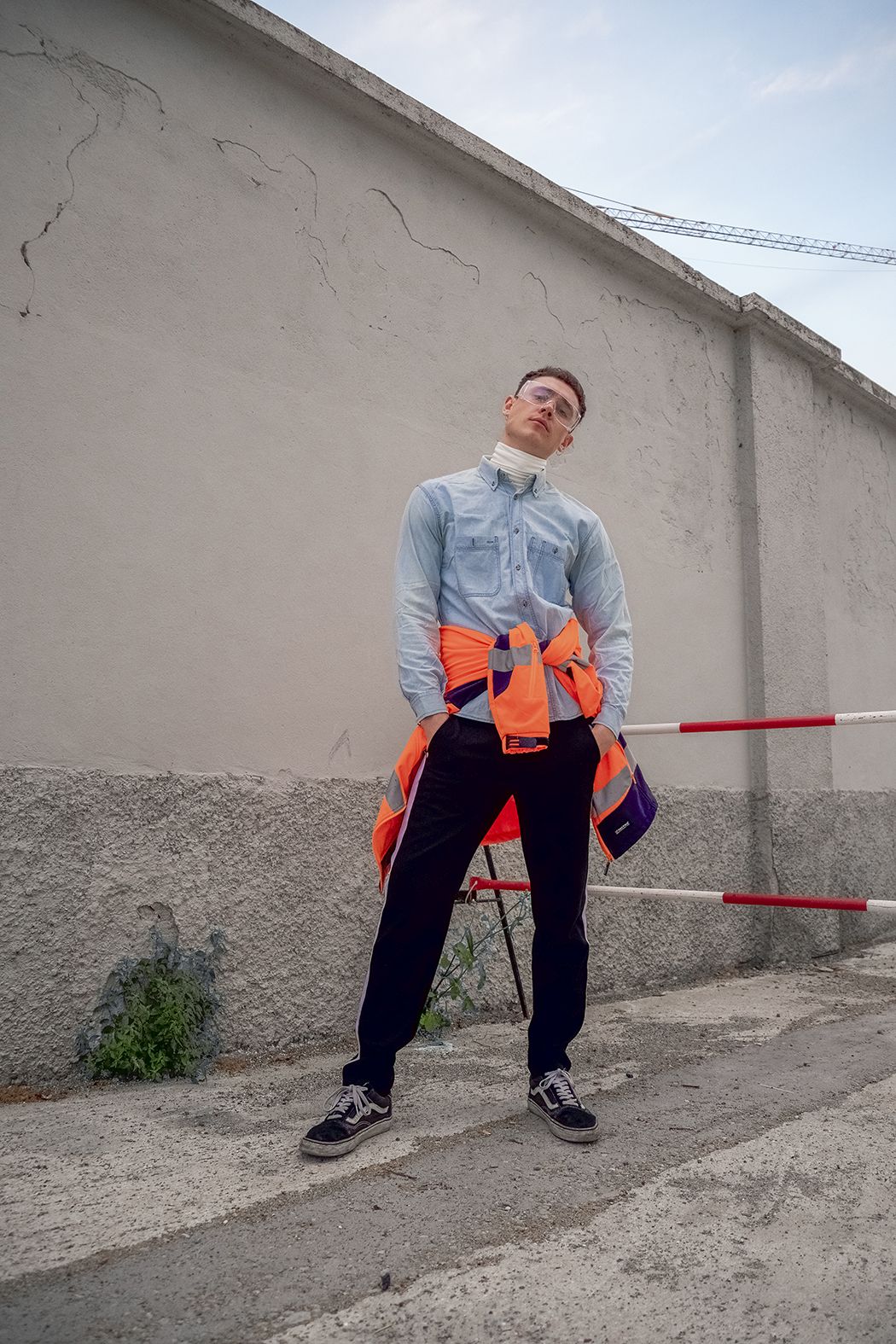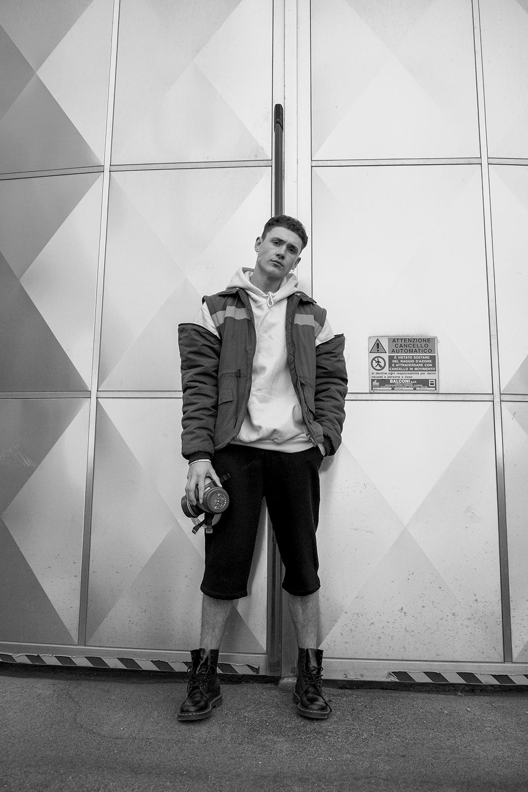 A KALTBLUT exclusive menswear editorial in collaboration with Milan IED: the project is inspired by London street workers. Photography by Myriam Tisbo. Model is Dylan Watson signed at Boommodels. Styling by Sofia Piazza. “I’m born in a small town in Puglia, Italy. I start to take pics at the age of 9 in occasion of a school trip, then i abandon the photography for school. After few years in the high school and some problems with my friends, i uses the photography as a way to escape from the reality and the bad moments that surrounded me. In all this the love for photography grown slowly.. In the occasion of my dad sickness i must face a very difficult time in my life, the darkest. Is in this occasion that I understand to love the photography so much because SHE is the only one that don’t leave me ever alone. In my works i try always to bring up the subject as an “heroine” and its for this that i use often low angles; in this shooting, in particular we wanted to represent a young, free and strong man mixing work clothes with streetwear dresses.” says the photographer.