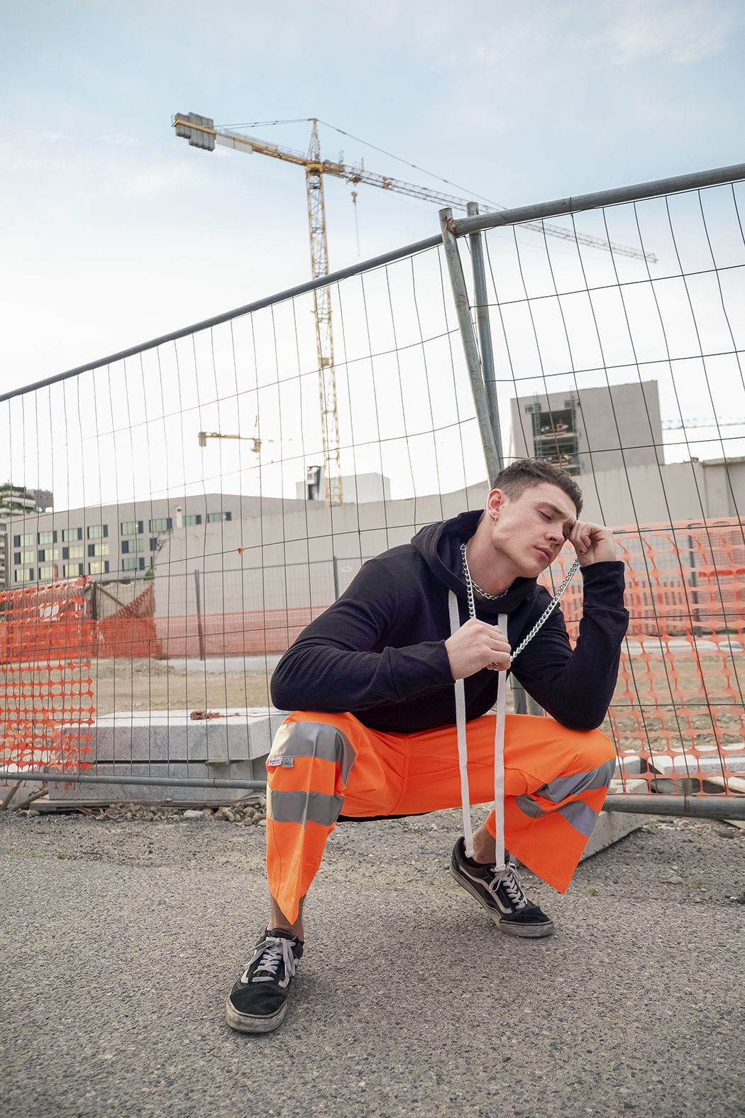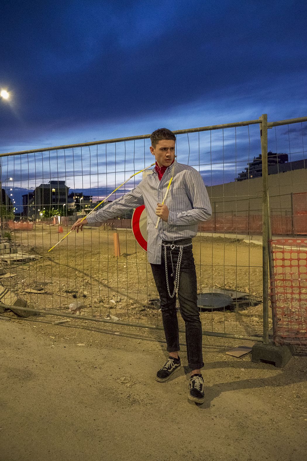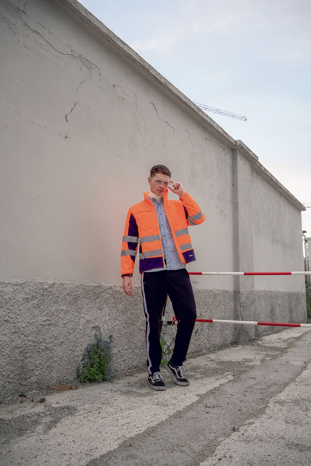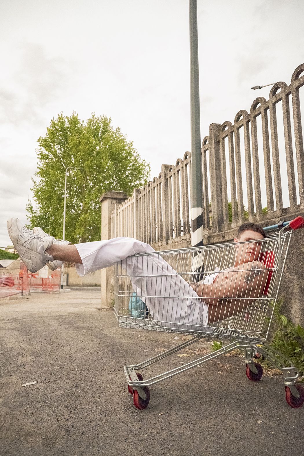A KALTBLUT exclusive menswear editorial in collaboration with Milan IED: the project is inspired by London street workers. Photography by Myriam Tisbo. Model is Dylan Watson signed at Boommodels. Styling by Sofia Piazza. “I’m born in a small town in Puglia, Italy. I start to take pics at the age of 9 in occasion of a school trip, then i abandon the photography for school. After few years in the high school and some problems with my friends, i uses the photography as a way to escape from the reality and the bad moments that surrounded me. In all this the love for photography grown slowly.. In the occasion of my dad sickness i must face a very difficult time in my life, the darkest. Is in this occasion that I understand to love the photography so much because SHE is the only one that don’t leave me ever alone. In my works i try always to bring up the subject as an “heroine” and its for this that i use often low angles; in this shooting, in particular we wanted to represent a young, free and strong man mixing work clothes with streetwear dresses.” says the photographer.