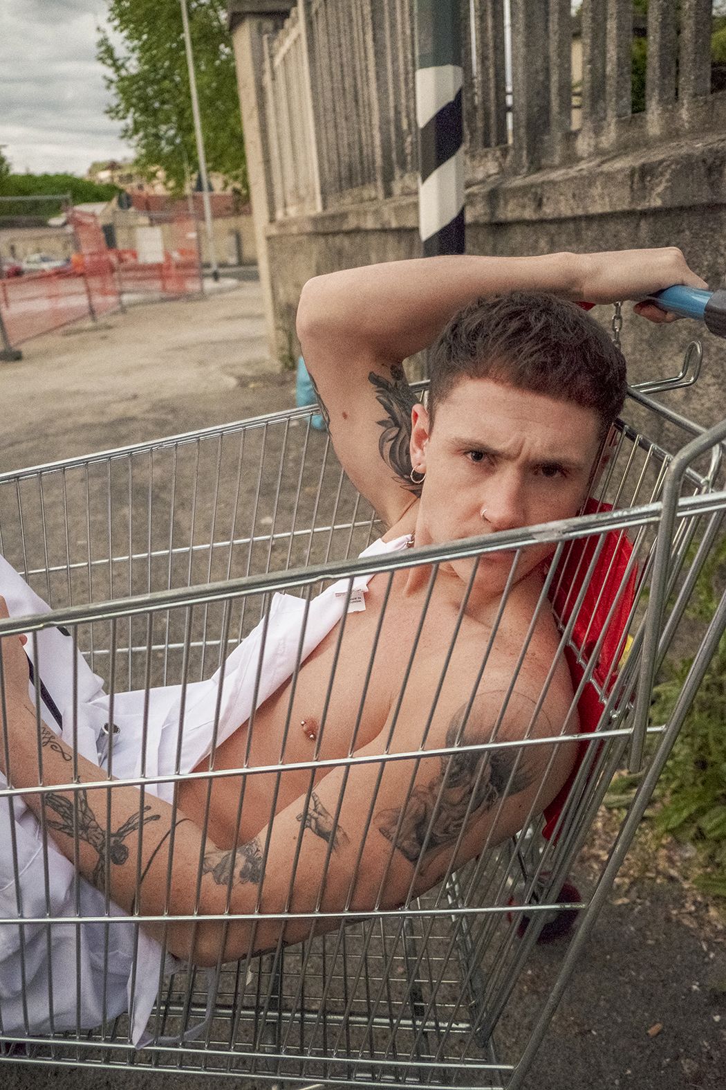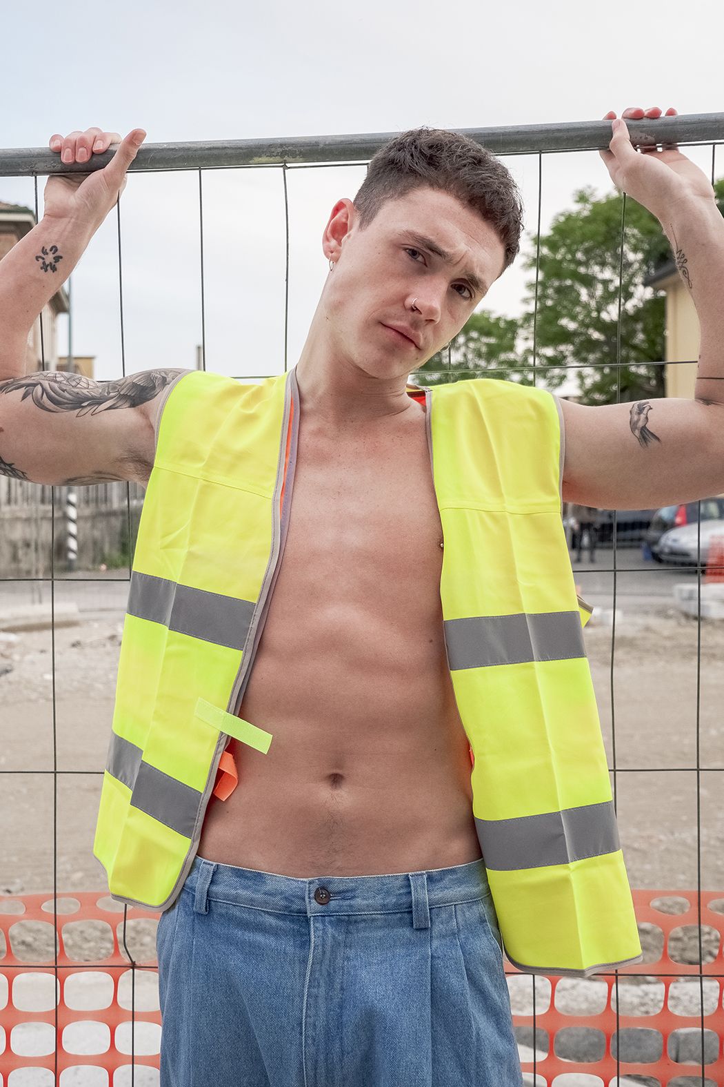 A KALTBLUT exclusive menswear editorial in collaboration with Milan IED: the project is inspired by London street workers. Photography by Myriam Tisbo. Model is Dylan Watson signed at Boommodels. Styling by Sofia Piazza. “I’m born in a small town in Puglia, Italy. I start to take pics at the age of 9 in occasion of a school trip, then i abandon the photography for school. After few years in the high school and some problems with my friends, i uses the photography as a way to escape from the reality and the bad moments that surrounded me. In all this the love for photography grown slowly.. In the occasion of my dad sickness i must face a very difficult time in my life, the darkest. Is in this occasion that I understand to love the photography so much because SHE is the only one that don’t leave me ever alone. In my works i try always to bring up the subject as an “heroine” and its for this that i use often low angles; in this shooting, in particular we wanted to represent a young, free and strong man mixing work clothes with streetwear dresses.” says the photographer.