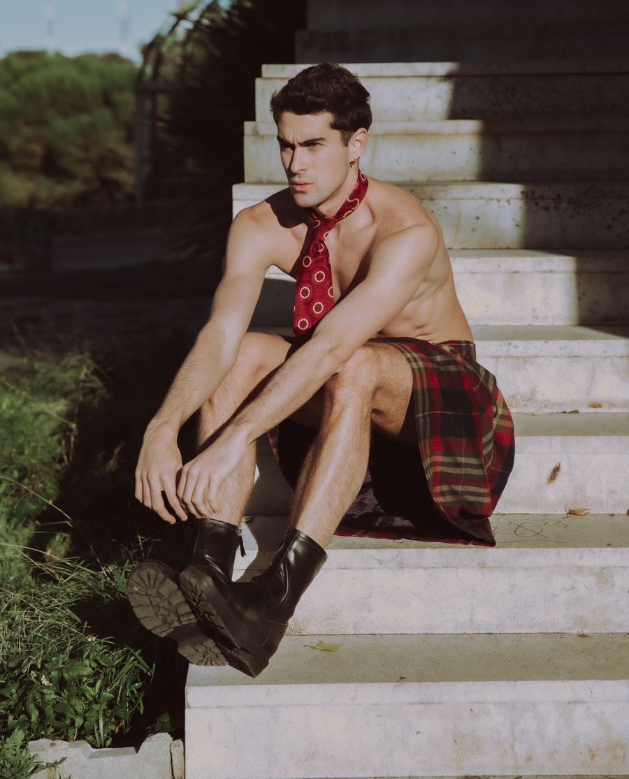 The morning of the shoot was quite cold in Lisbon. We were going green urban so Monsanto, the biggest green area of Lisbon, opened wide its arms for our creative journey. Numbing from getting changed outdoors early in the morning, Breno was doing his best to stay hardcore soft and chic simultaneously.”